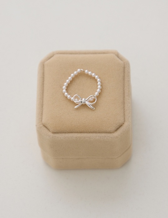 商品名稱:【925純銀】蝴蝶結珍珠彈性繩戒指