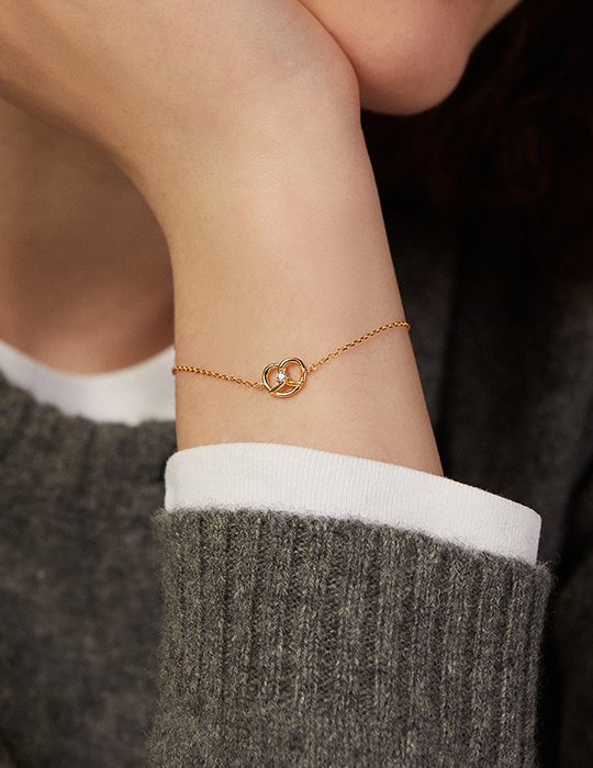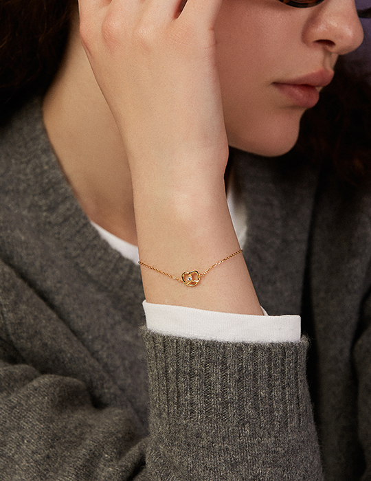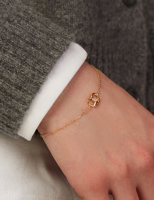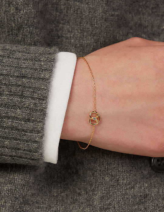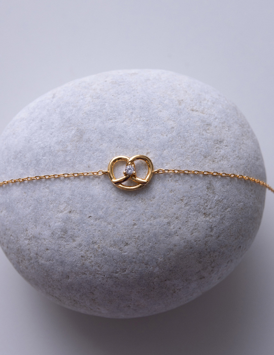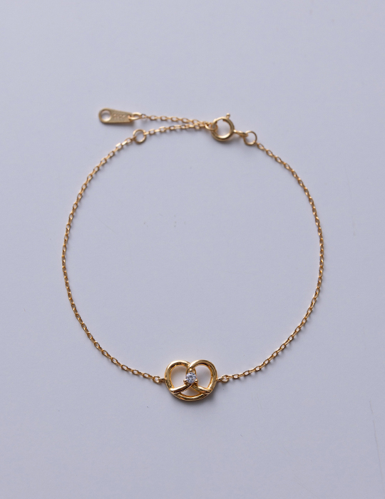 【925純銀】蝴蝶餅鑲嵌鋯石手鍊(金)
