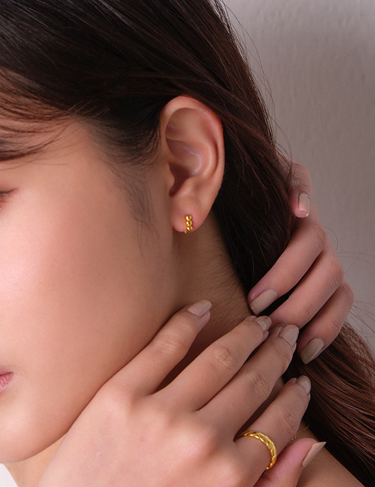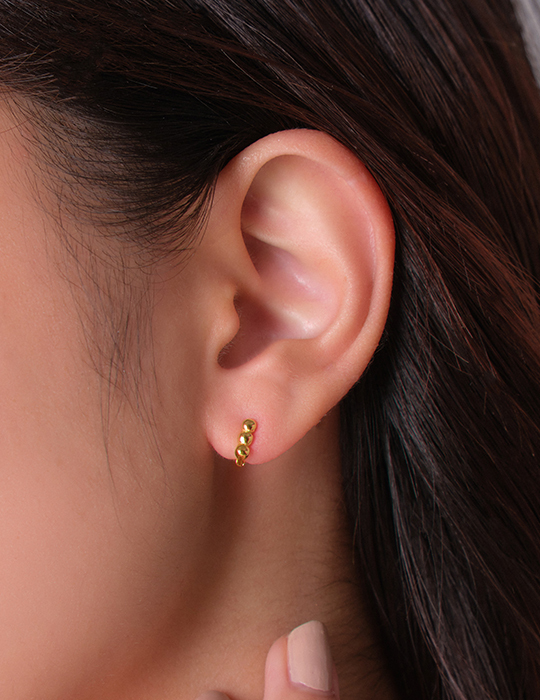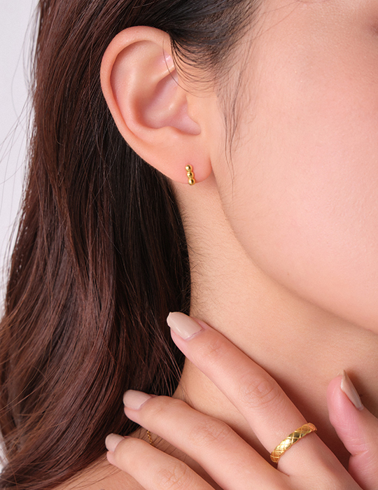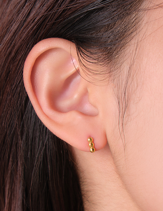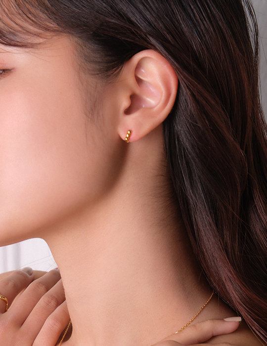 【925純銀】迷你圓珠圈型。銀針耳環(金)
