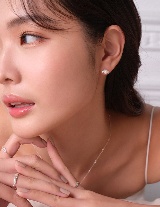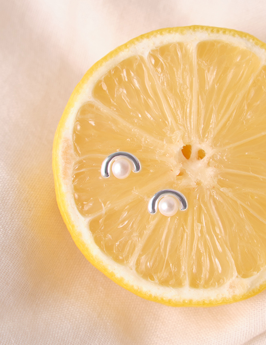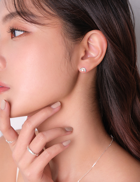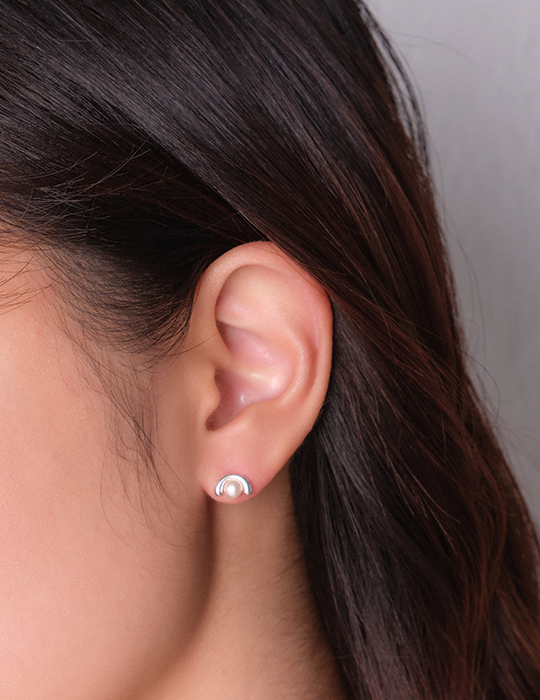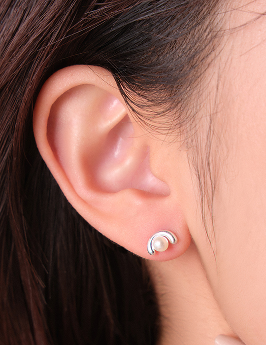 【925純銀】迷你弧形小珍珠。銀針耳環
