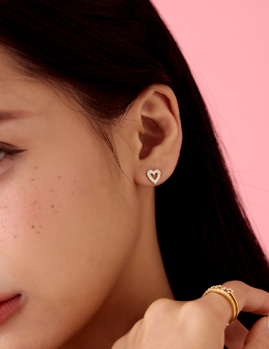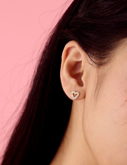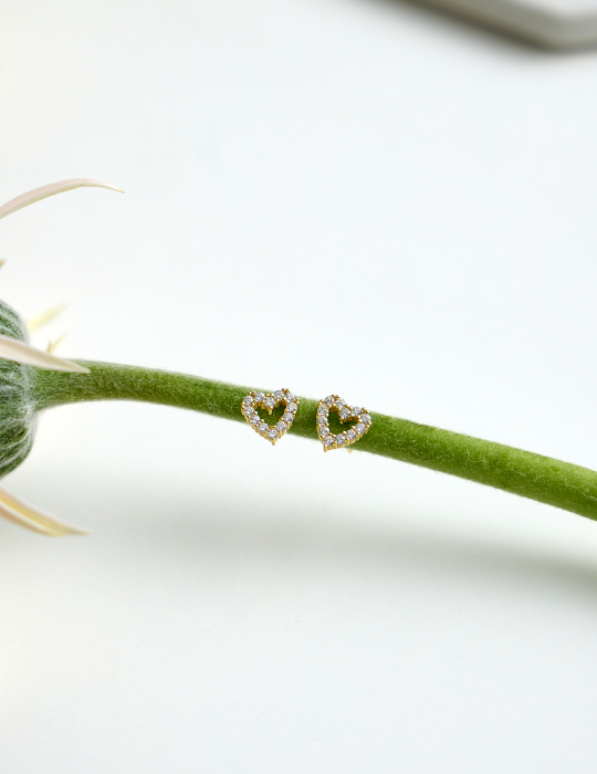【925純銀】迷你愛心鋯石。銀針耳環