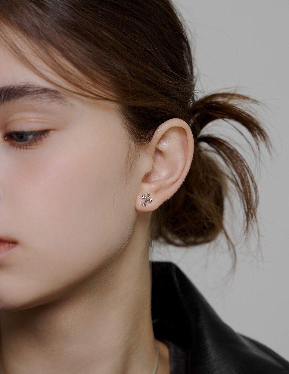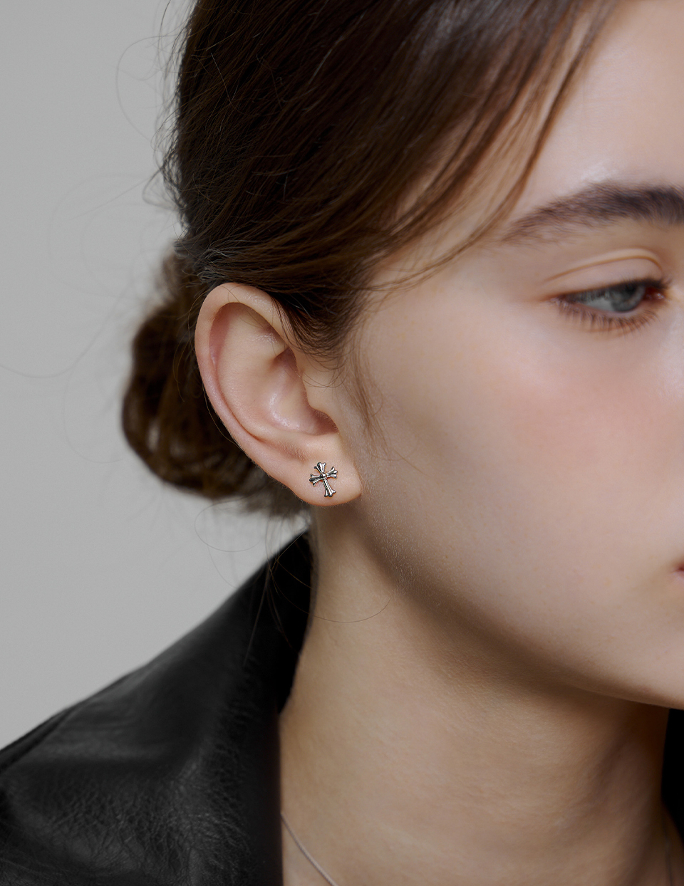 【925純銀】銀光十字。針式耳環