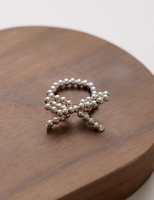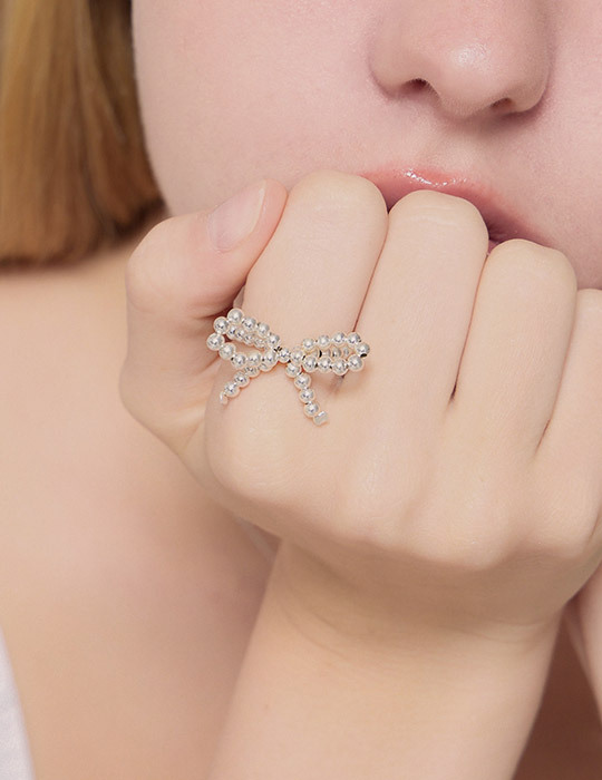 【925純銀】銀珠蝴蝶結編珠可調式戒指