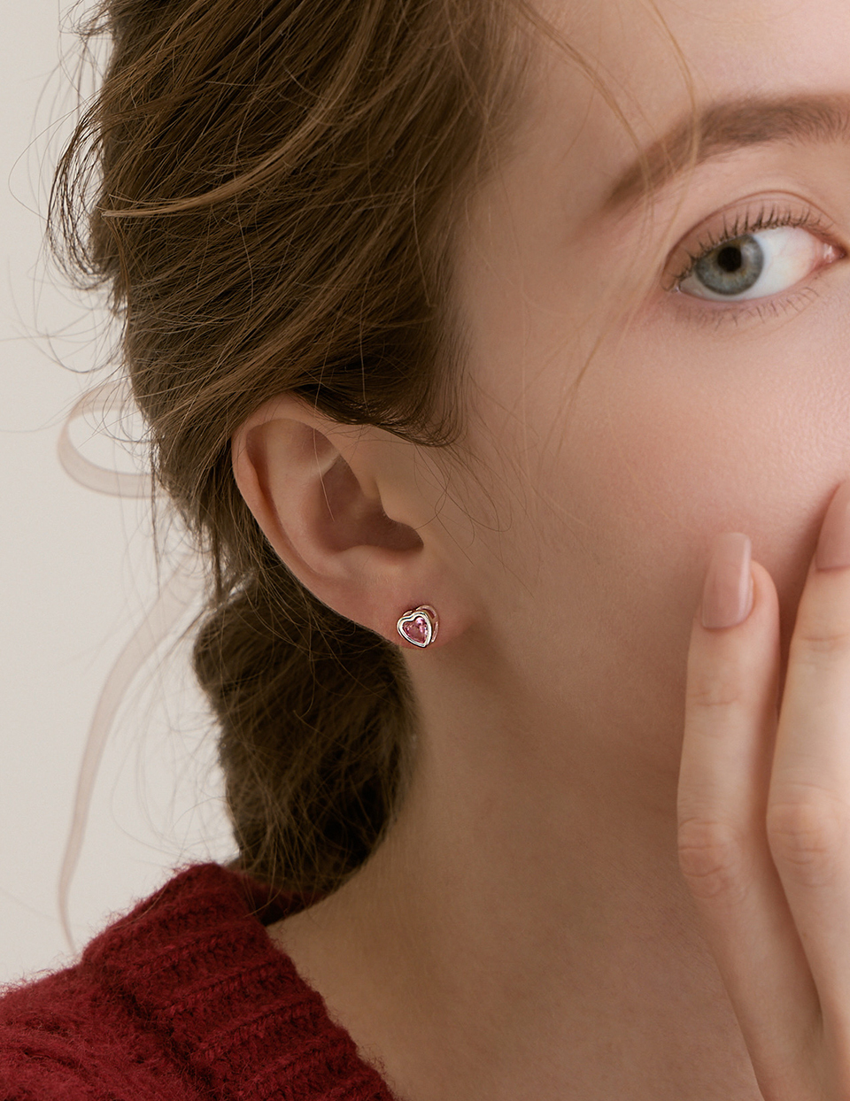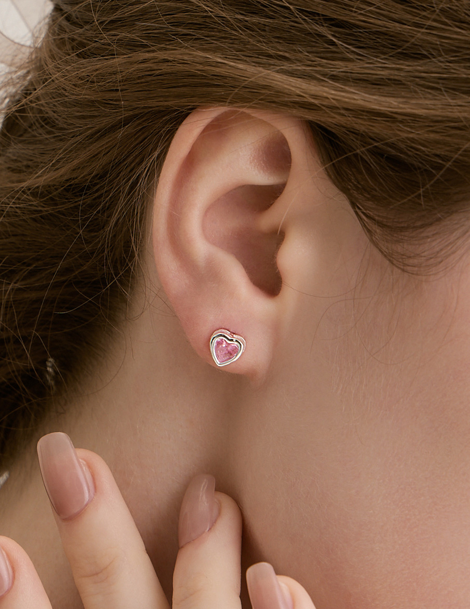 商品名稱:【925純銀】鋯石夾心。針式耳環(粉)