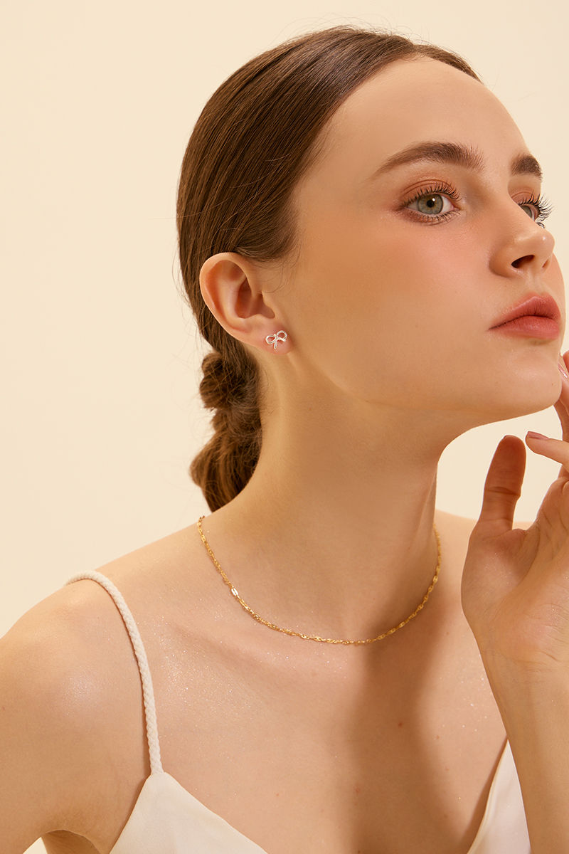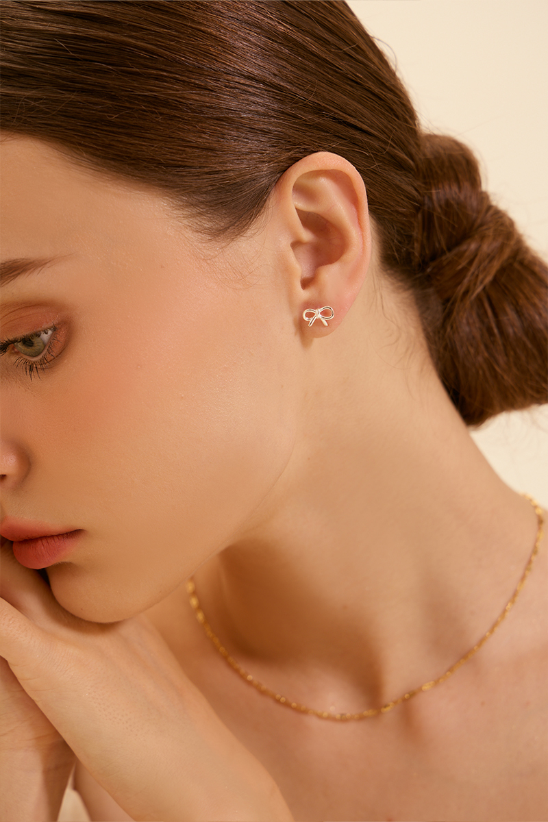商品名稱: 【925純銀】鏤空蝴蝶結。銀針耳環