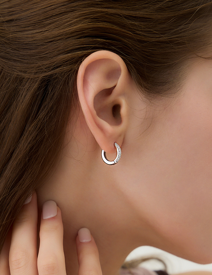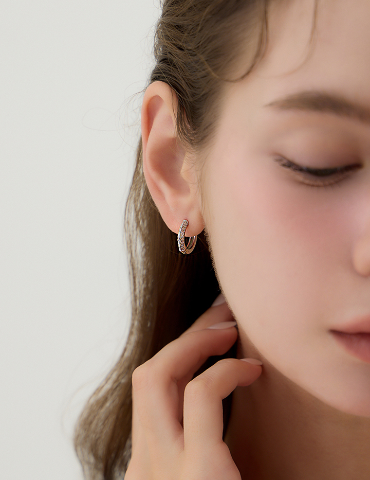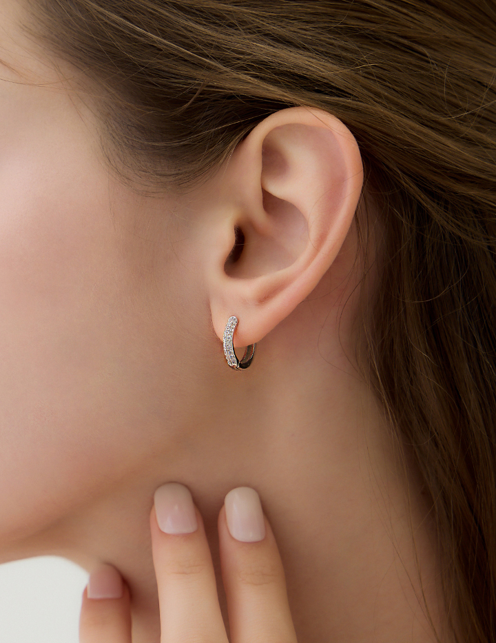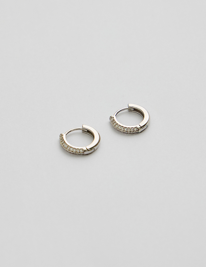 【925純銀】鑽光圈圈。針式耳環-1.3cm