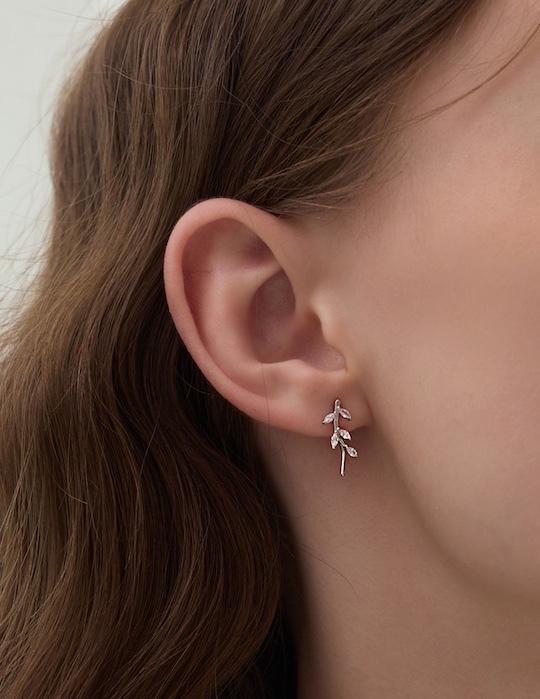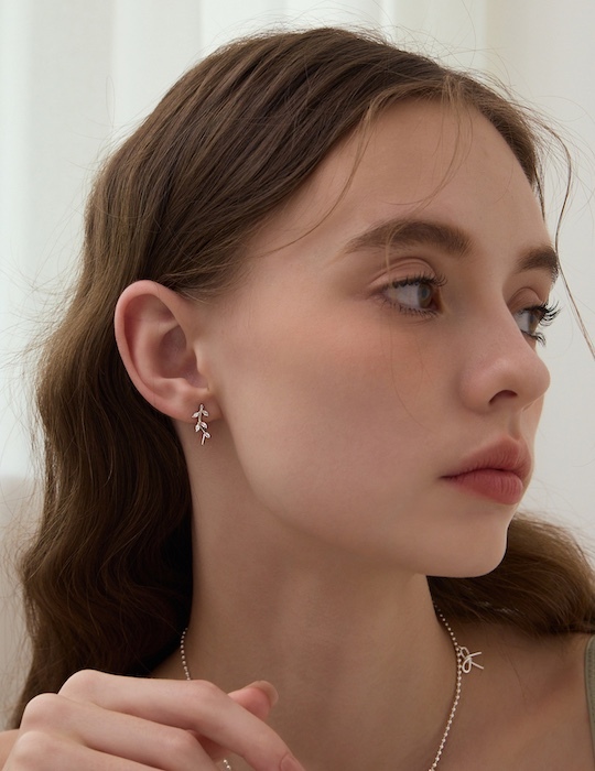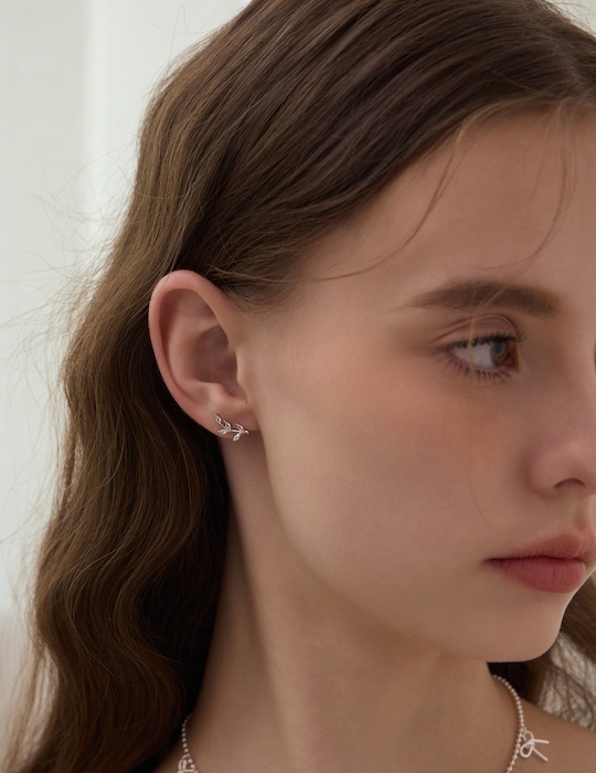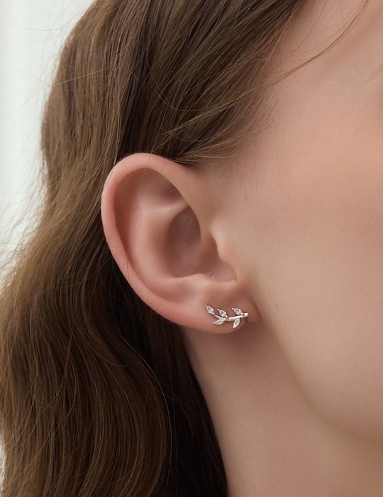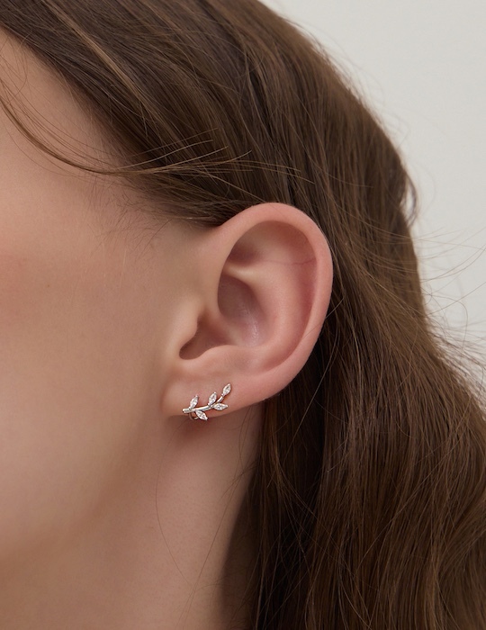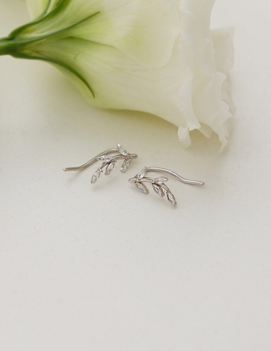 【925純銀】閃鑽橄欖葉。夾式耳環(銀)