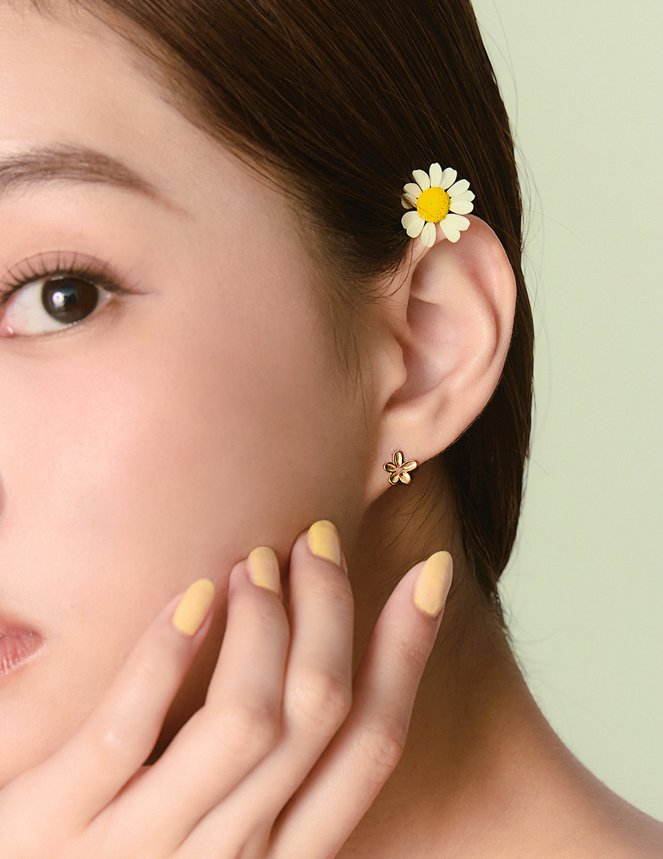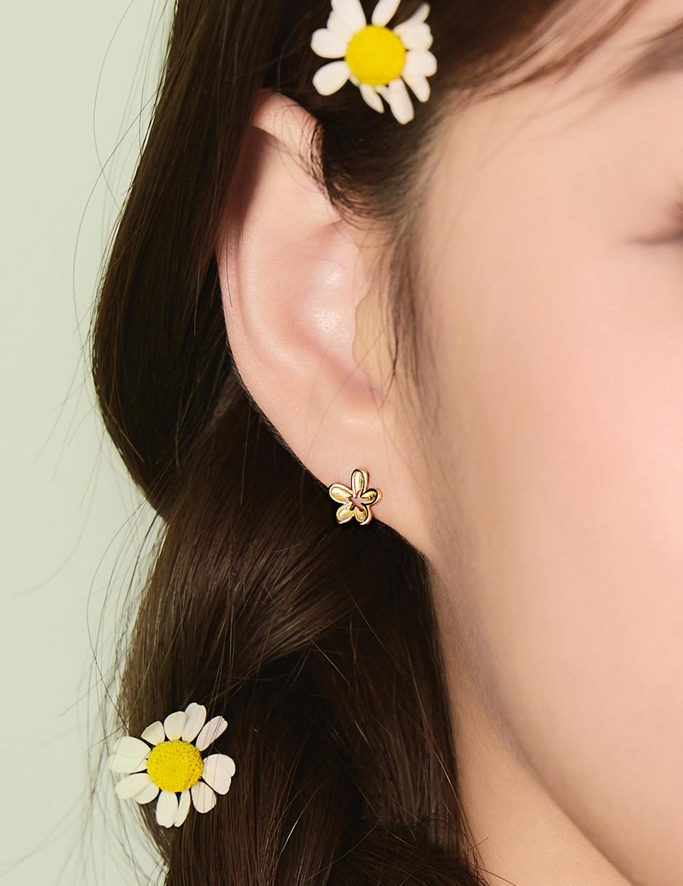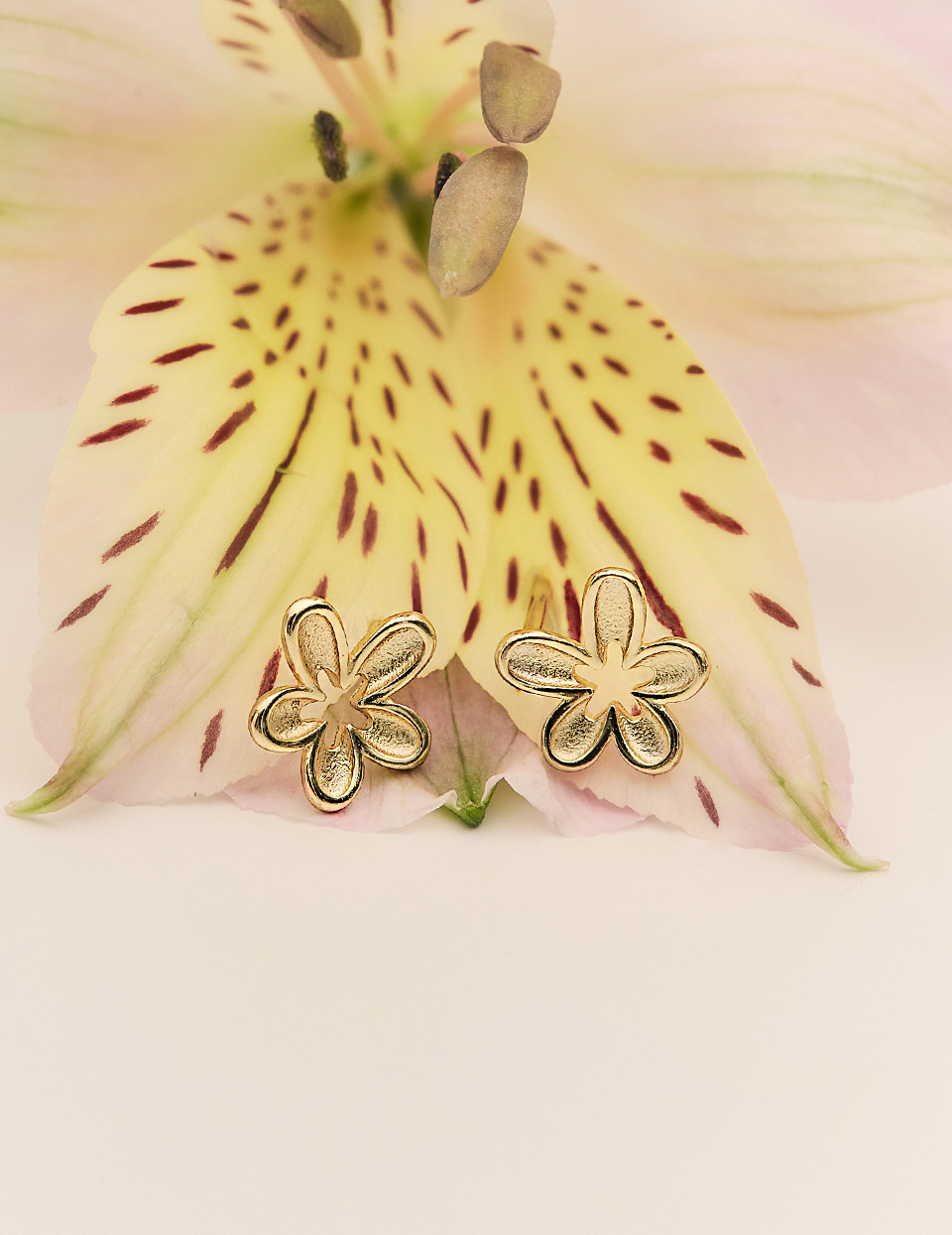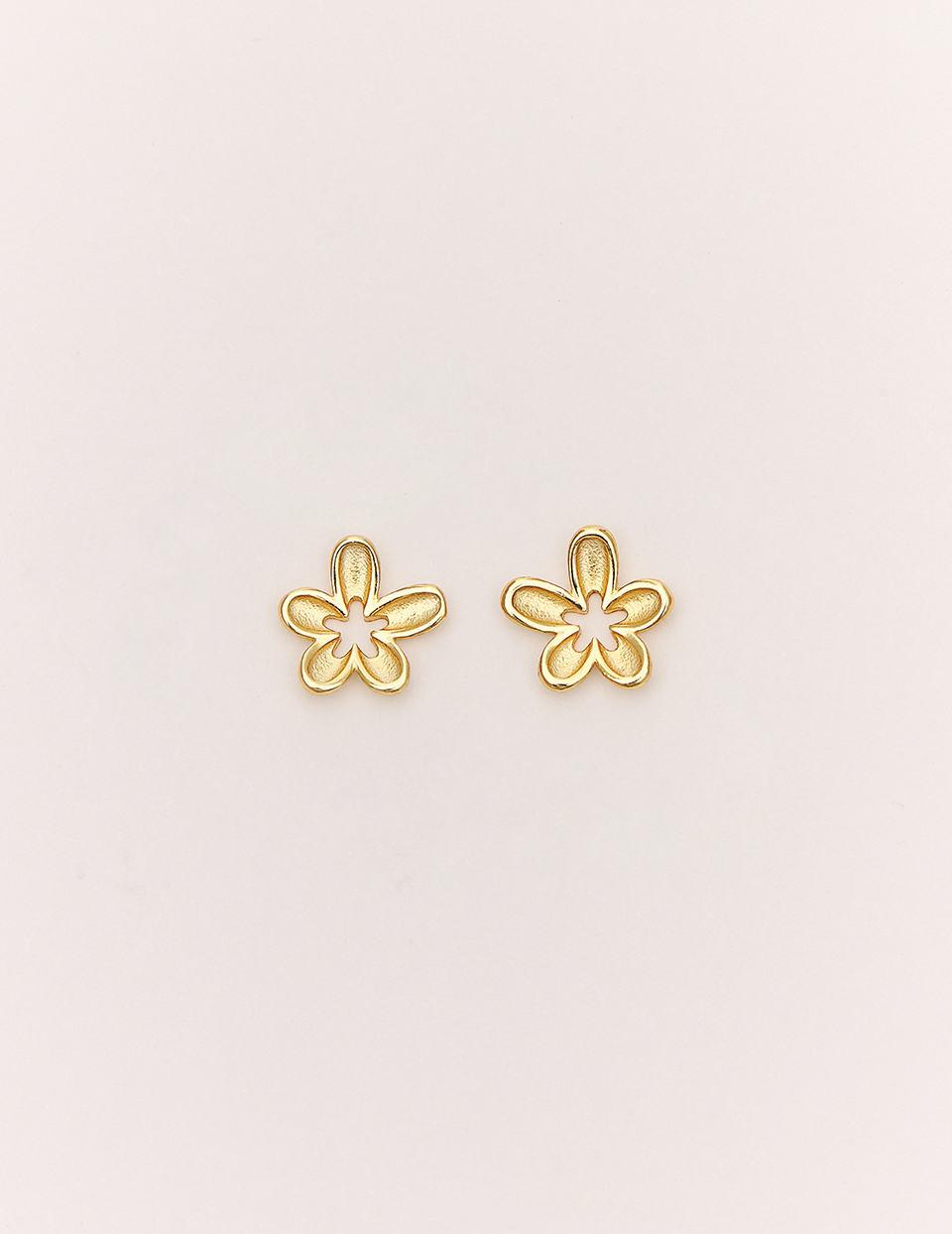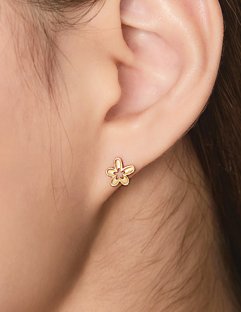 【925純銀】韓系鏤空小花。針式耳環(金)
