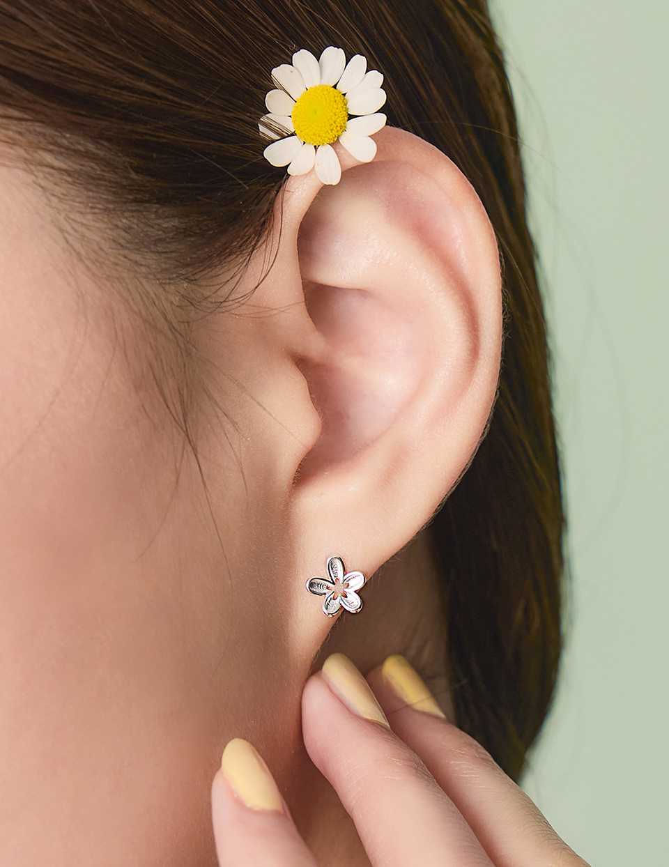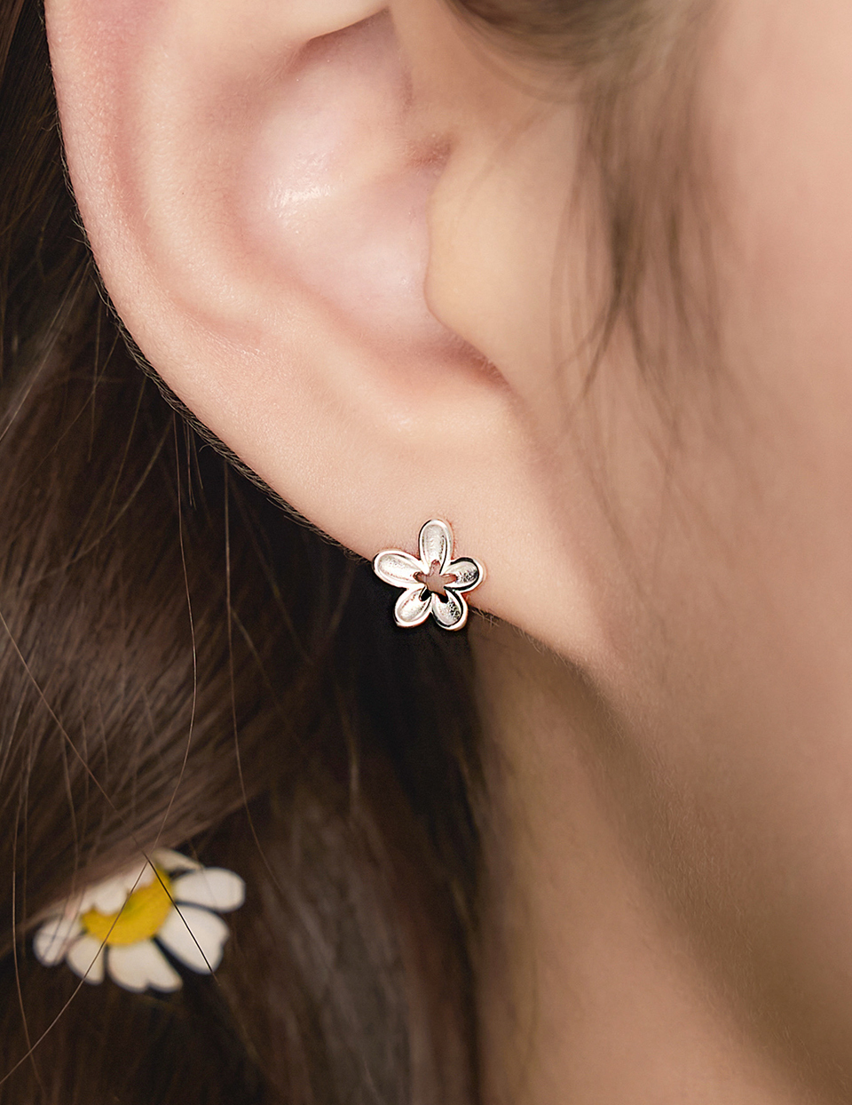 【925純銀】韓系鏤空小花。針式耳環(銀)