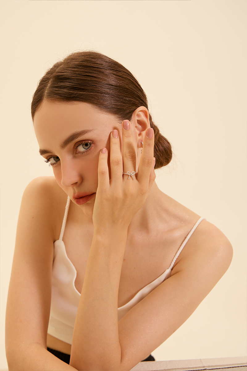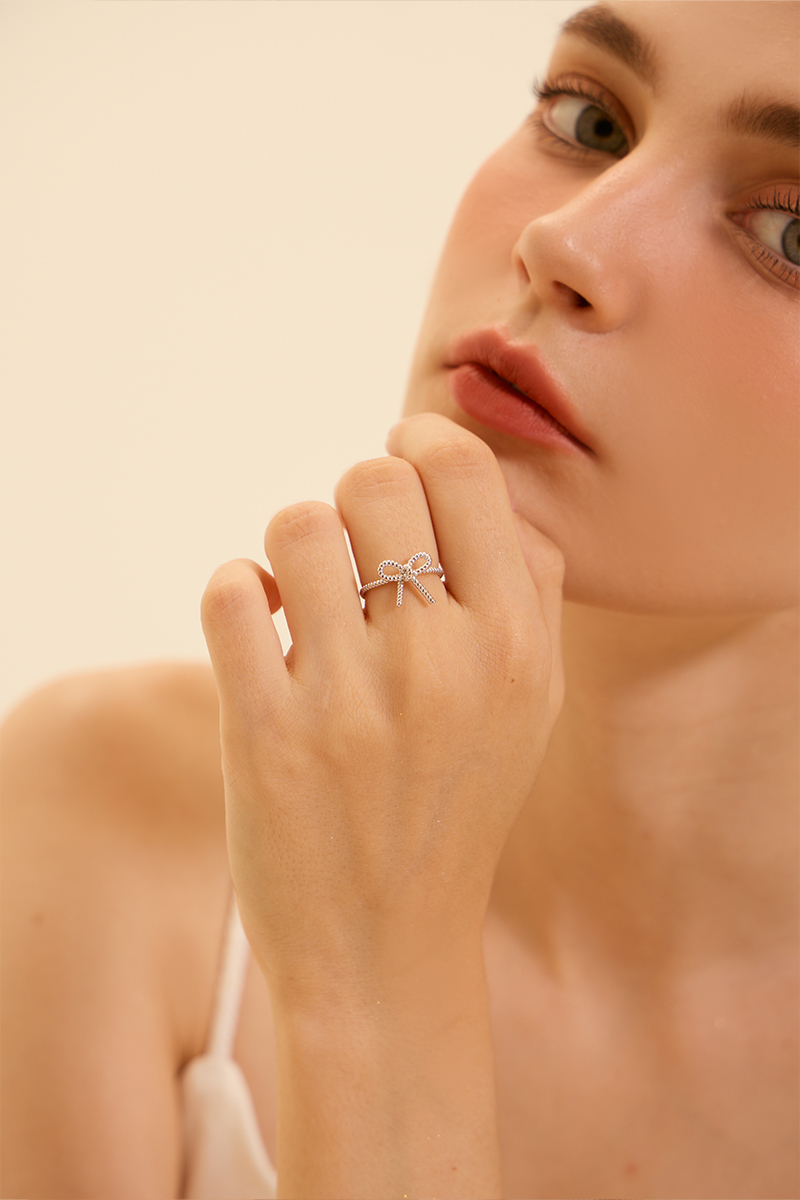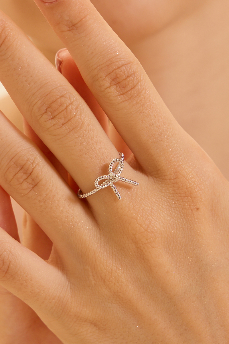 商品名稱:【925純銀】 麻花蝴蝶結可調式戒指