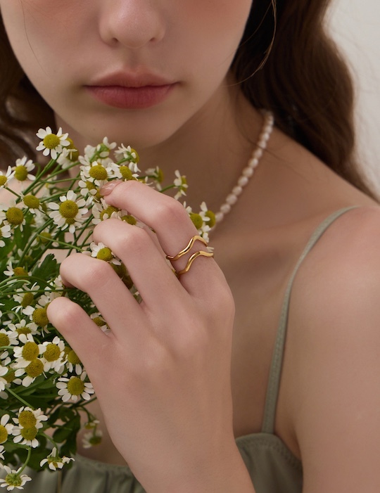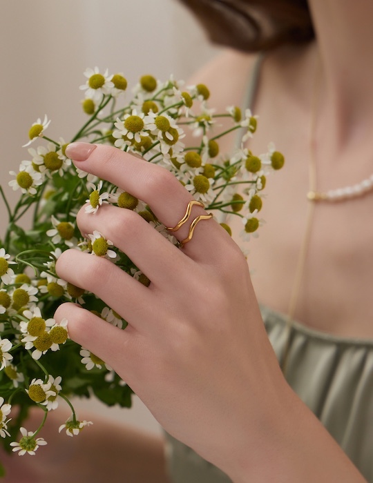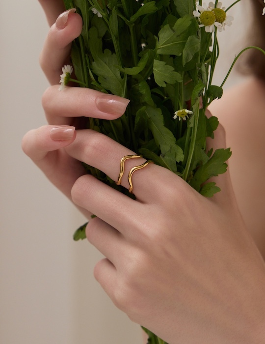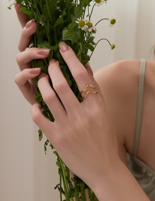 商品名稱:【鈦鋼】不對稱流線可調式戒指(金)