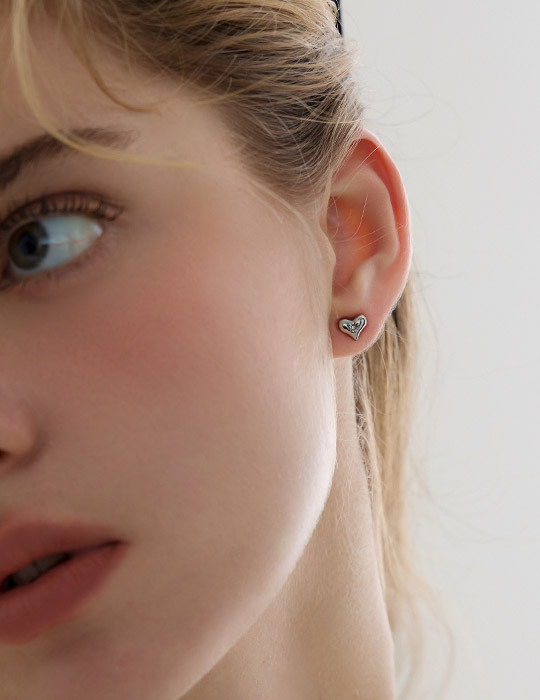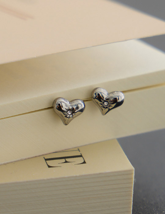 【鈦鋼】光芒閃耀愛心鋯石。針式耳環