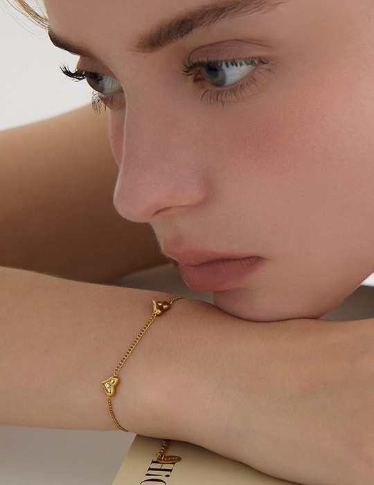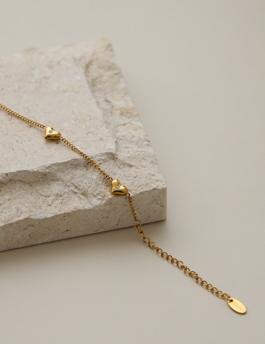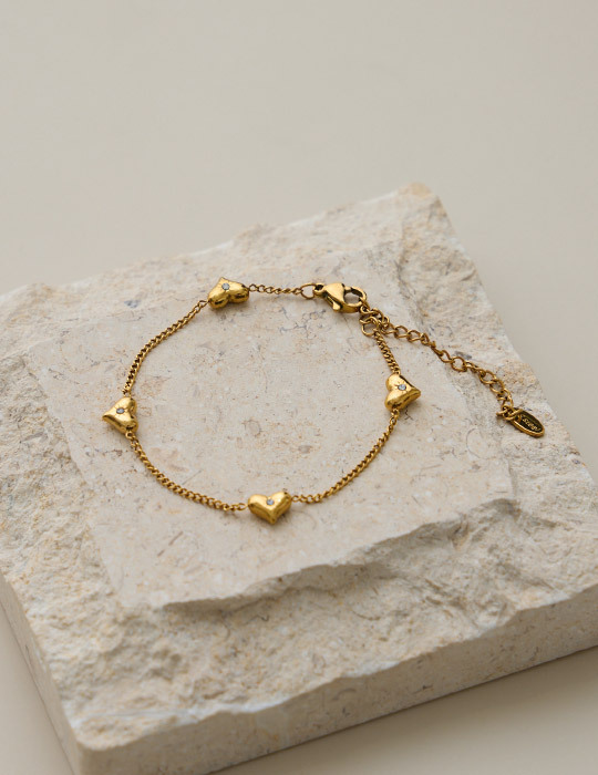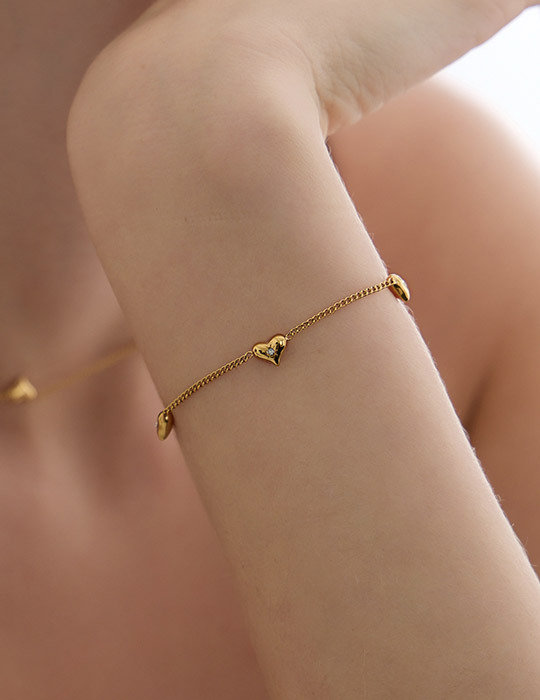 【鈦鋼】光芒閃耀愛心鋯石手鍊(金)