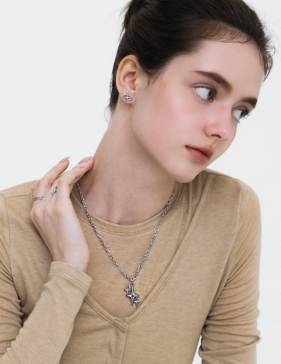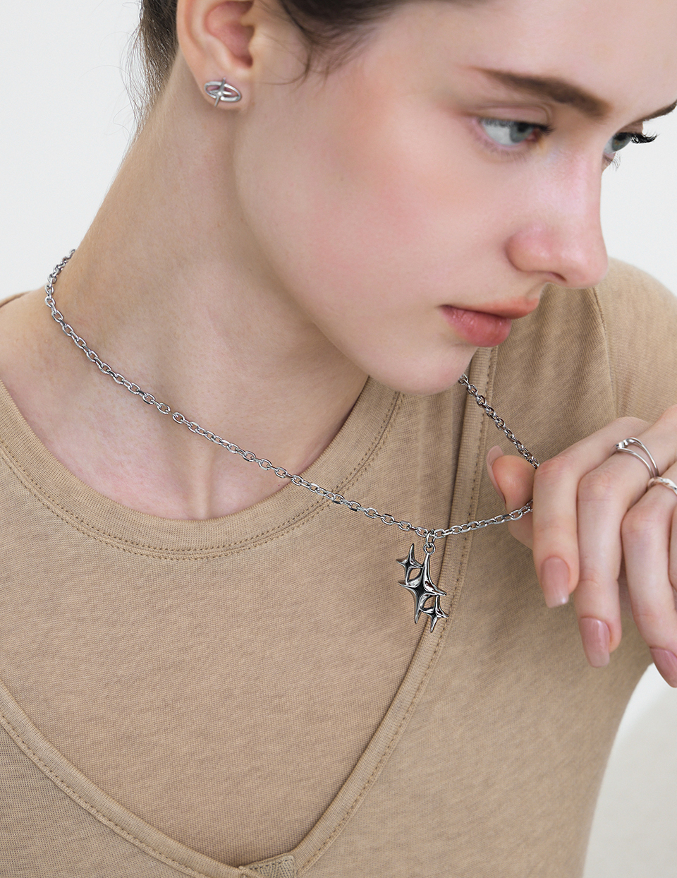 【鈦鋼】十字星芒排列項鍊
