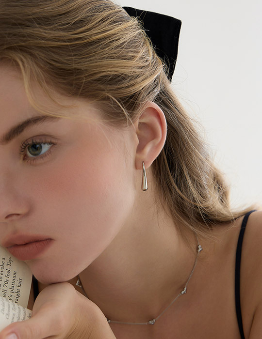 商品名稱:【鈦鋼】垂掛線型水滴。針式耳環(銀)