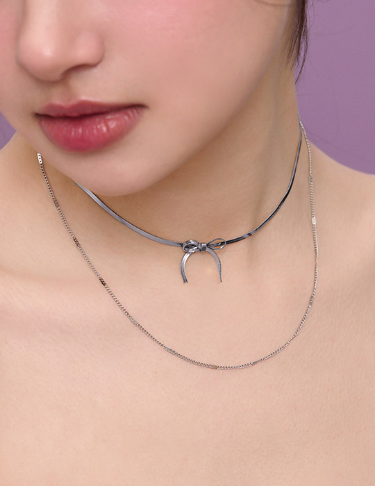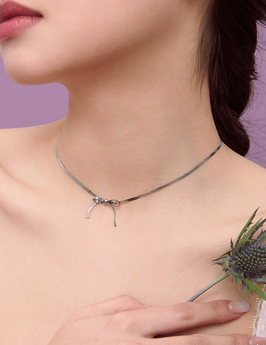 【鈦鋼】少女的浪漫蝴蝶結項鍊(銀)