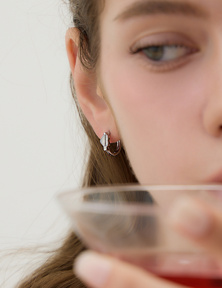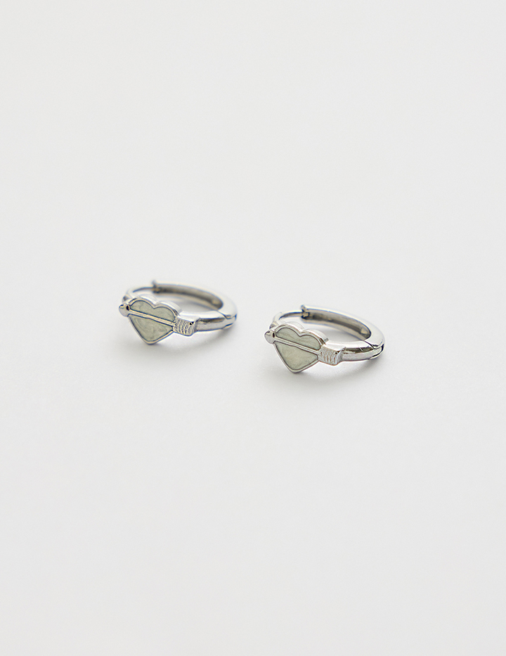【鈦鋼】愛心弓箭。針式耳環(白)