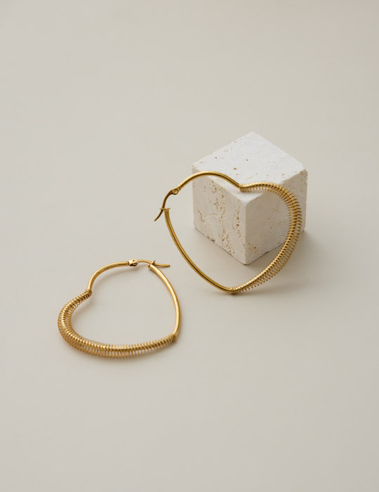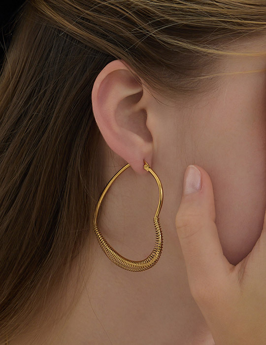 商品名稱:【鈦鋼】派對愛心大圈圈。針式耳環(金)