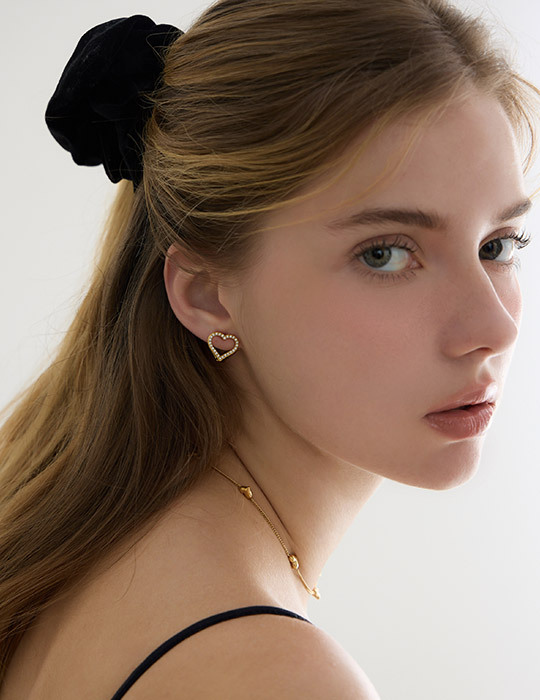 商品名稱:【鈦鋼】派對愛心滿鑽線條。針式耳環(金)