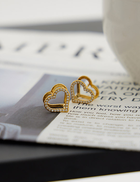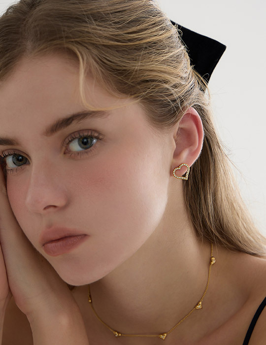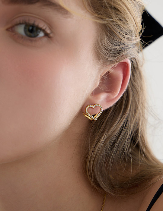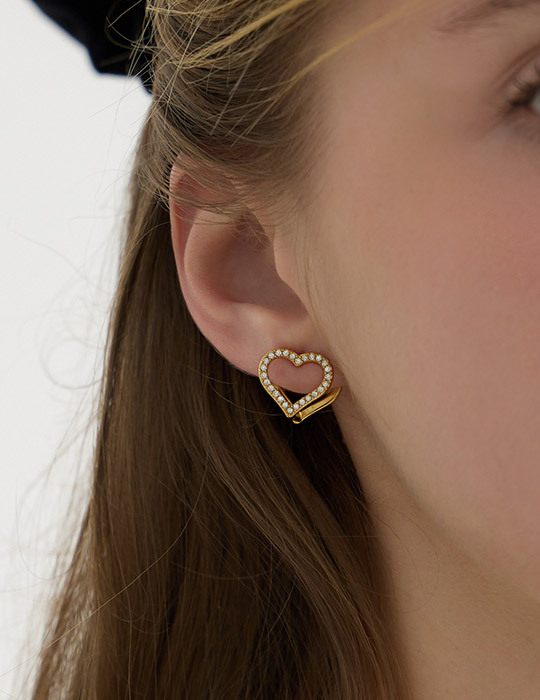 【鈦鋼】派對愛心滿鑽線條。針式耳環(金)