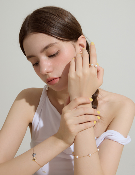 材質:18K金電鍍鈦鋼/淡水珍珠