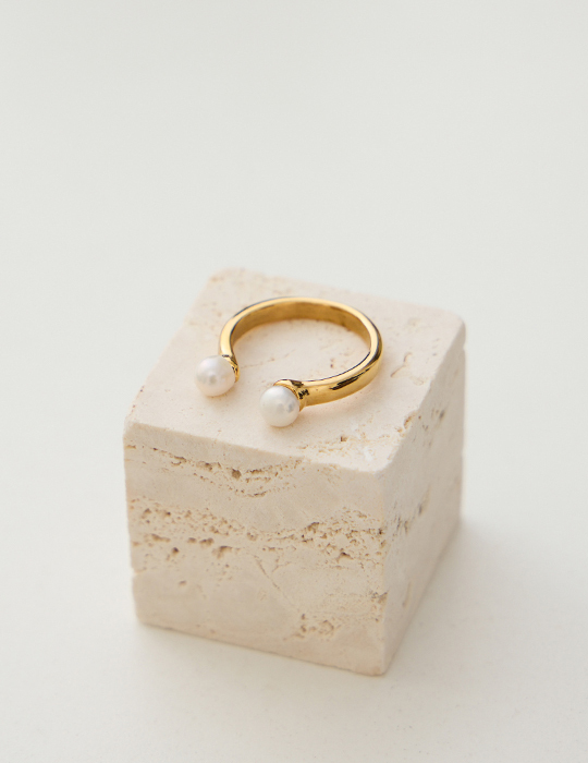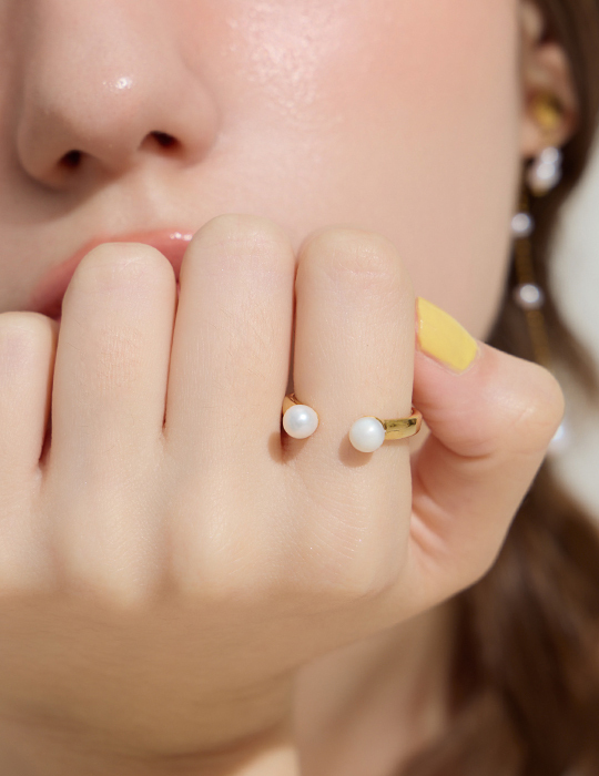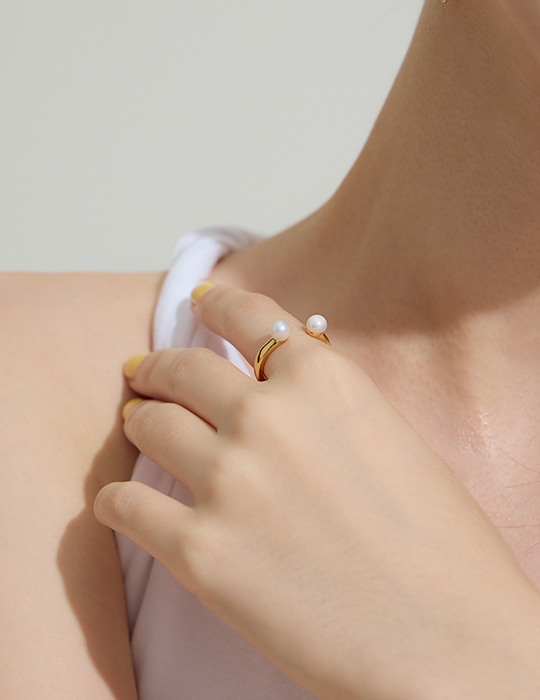 商品名稱:【鈦鋼】珍珠交映可調式戒指(金)