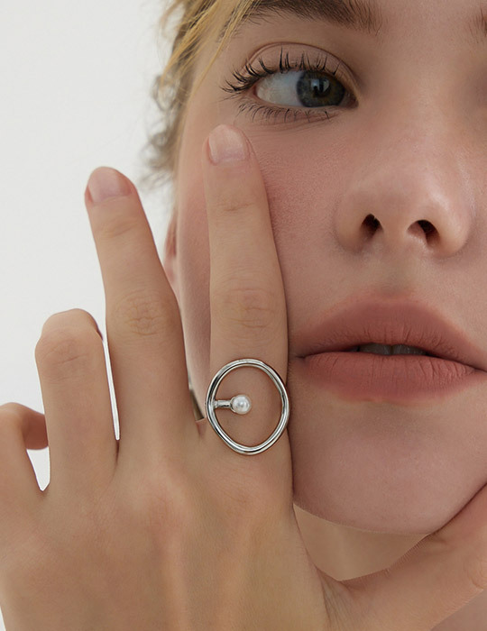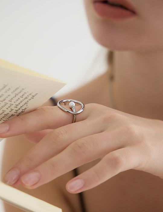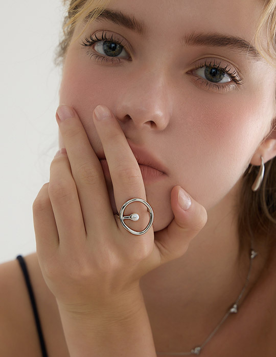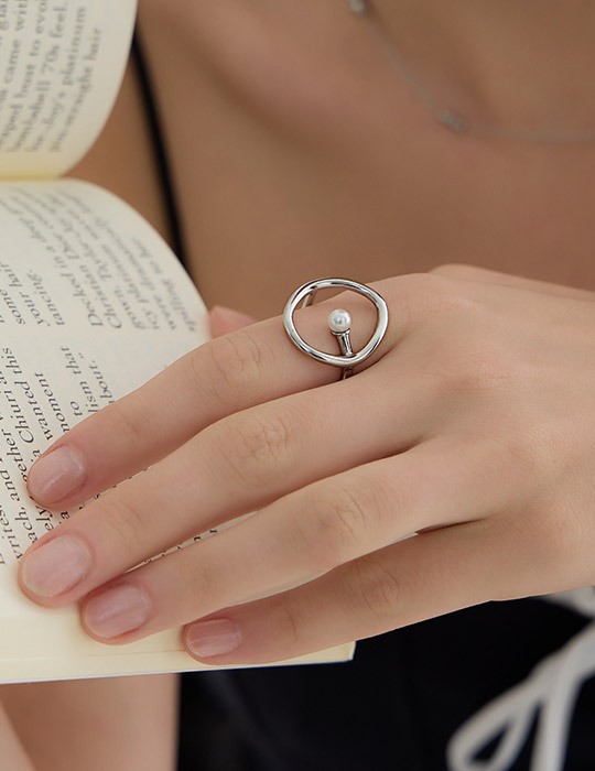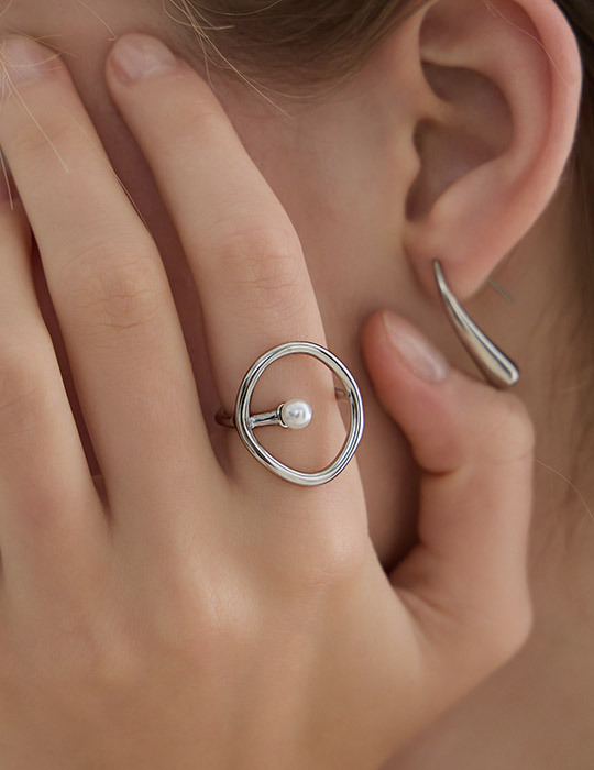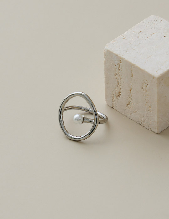 【鈦鋼】珍珠幾何圓圈線條戒指(銀)