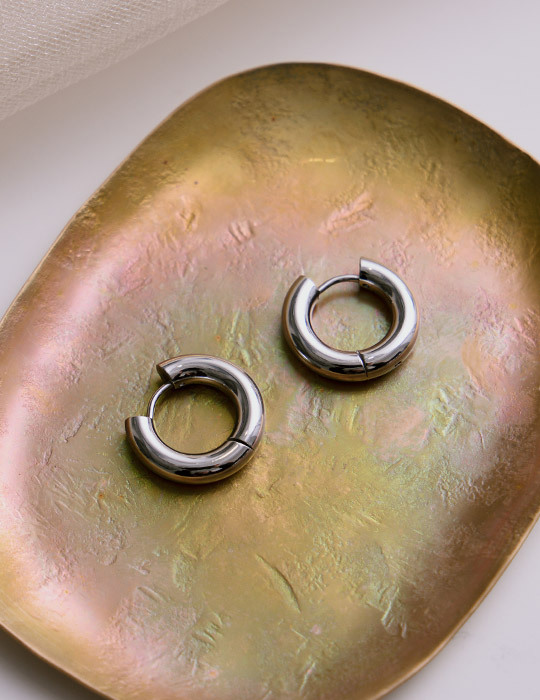 【鈦鋼】簡約O型圈圈耳環(銀)