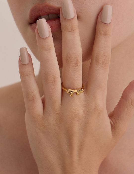 商品名稱: 【鈦鋼】經典立體蝴蝶結戒指(金)