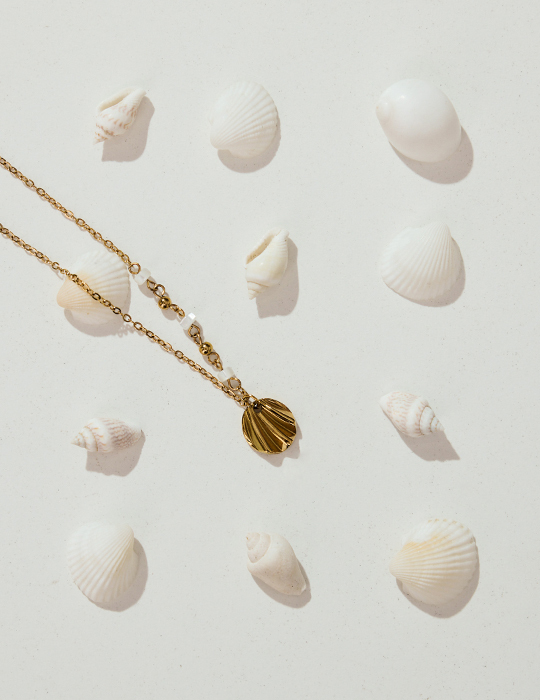 商品名稱:【鈦鋼】花漾天然海貝項鍊