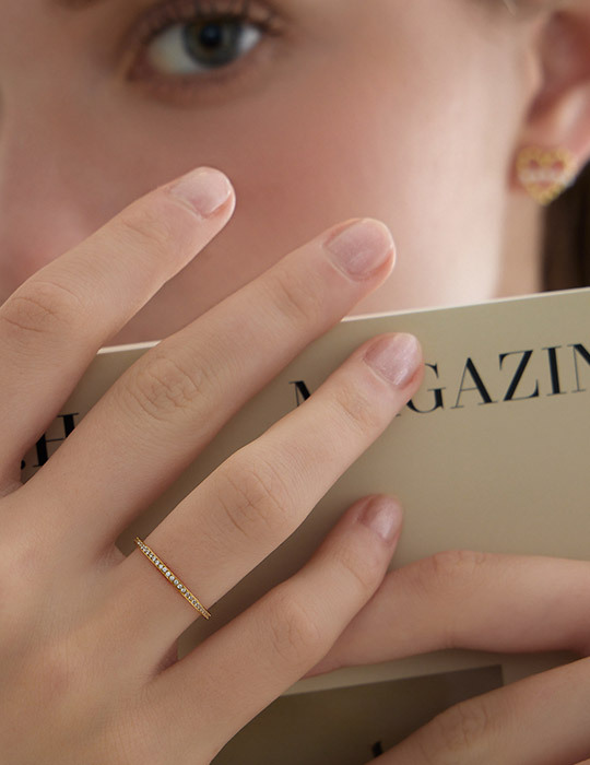【鈦鋼】鋯石半排鑽閃耀戒指