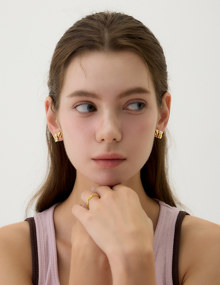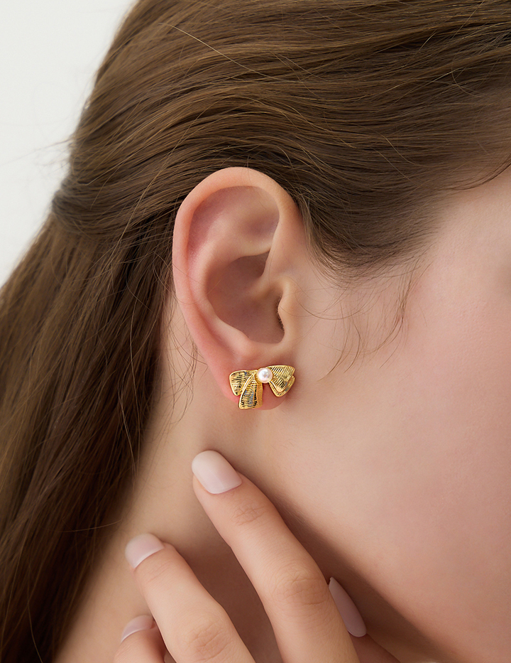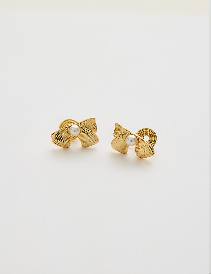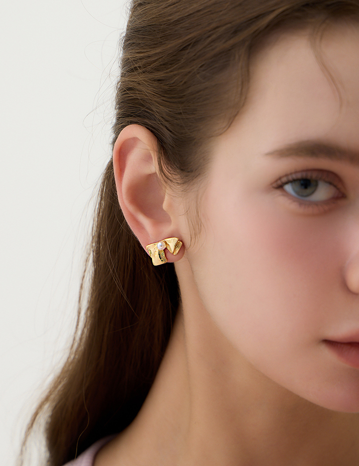 商品名稱:不對稱金緞珍珠。夾式耳環