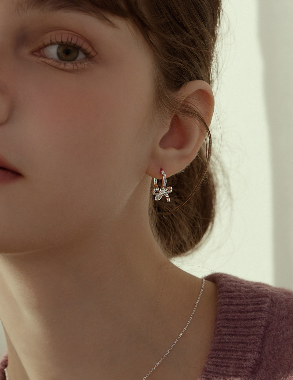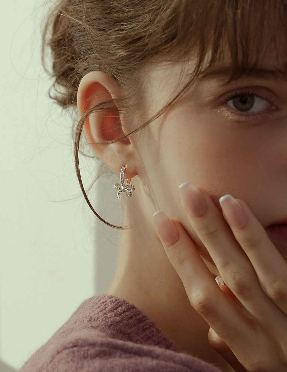 商品名稱:不規則亮鑽蝴蝶結。針式耳環