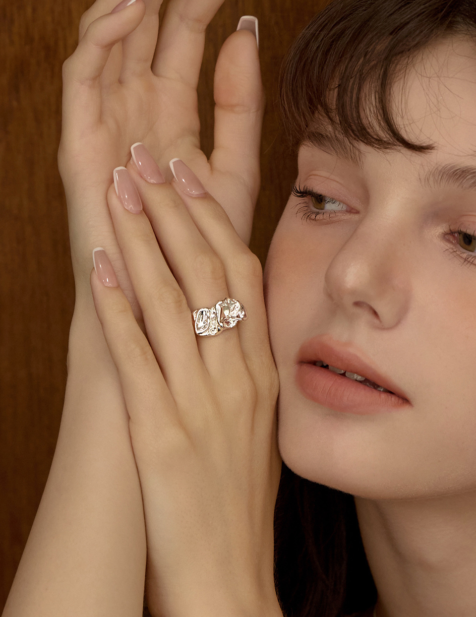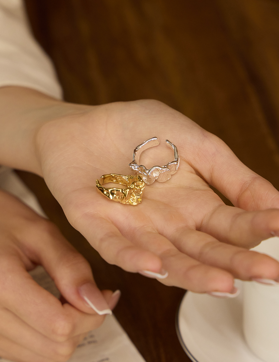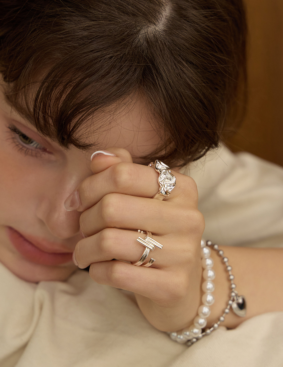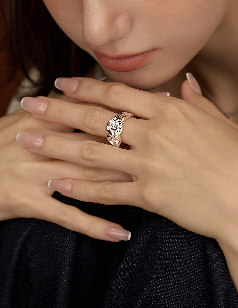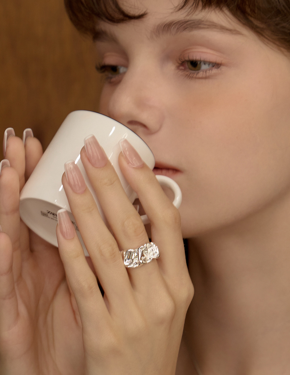 商品名稱:不規則抓皺紋路可調式戒指(銀)
