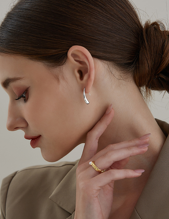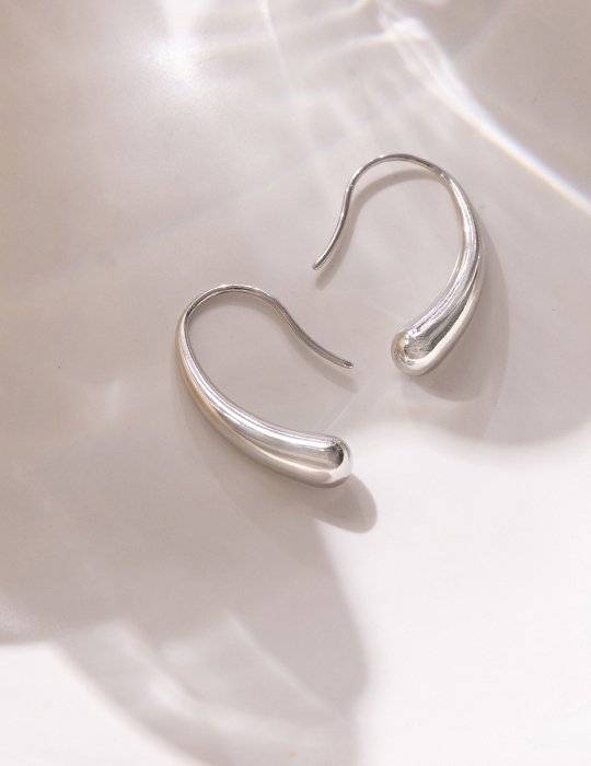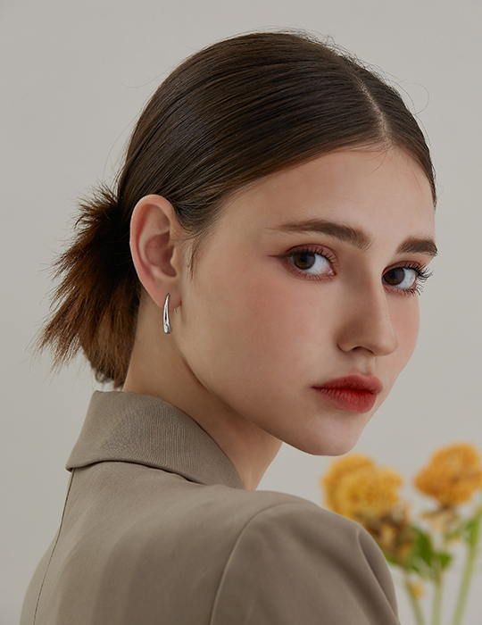 不規則水滴型。鋼針耳環(銀)