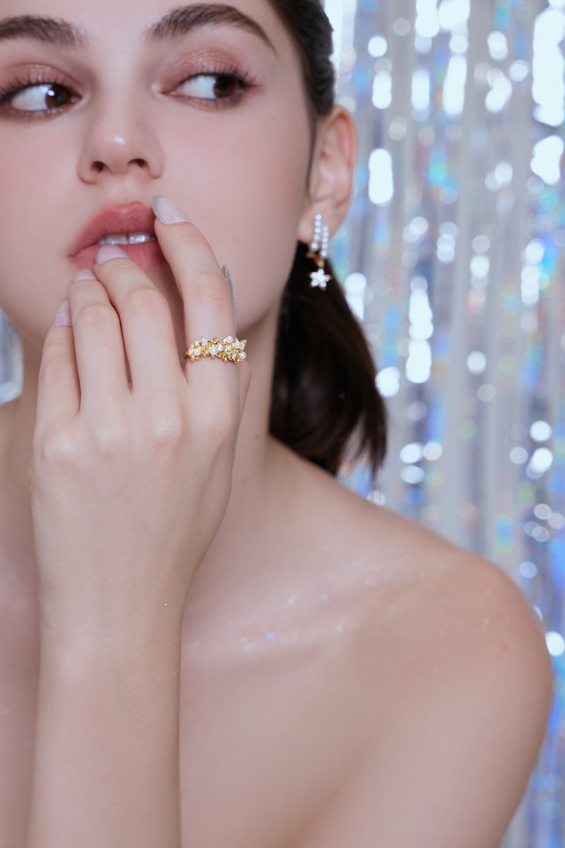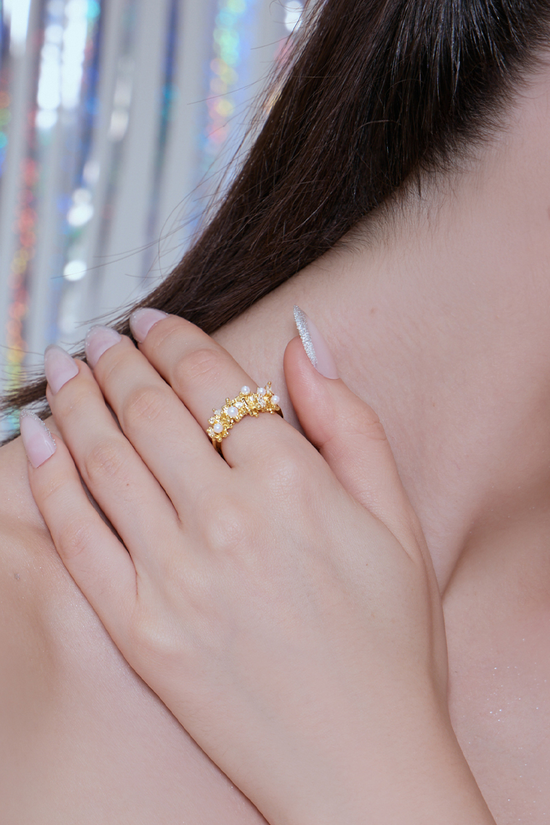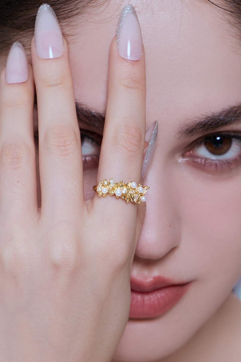 商品名稱: 不規則鋯石珍珠可調式戒指(金)