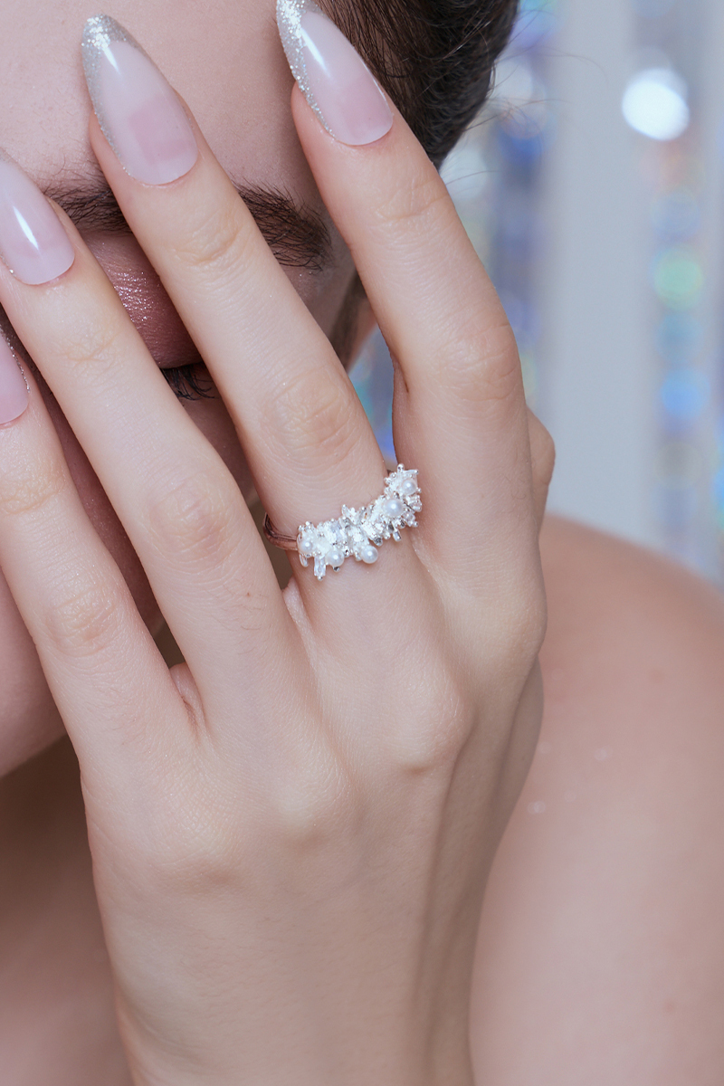 商品名稱: 不規則鋯石珍珠可調式戒指(銀)