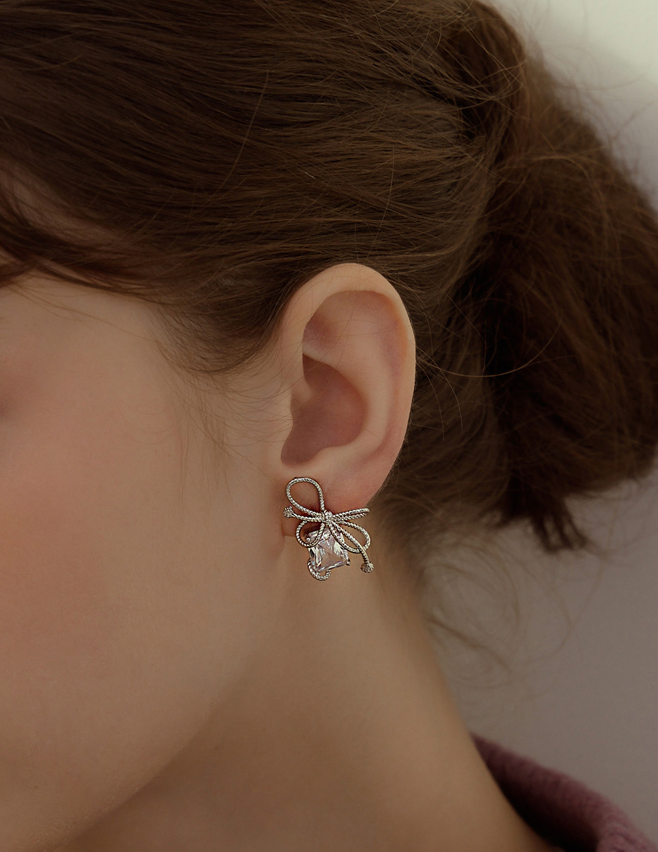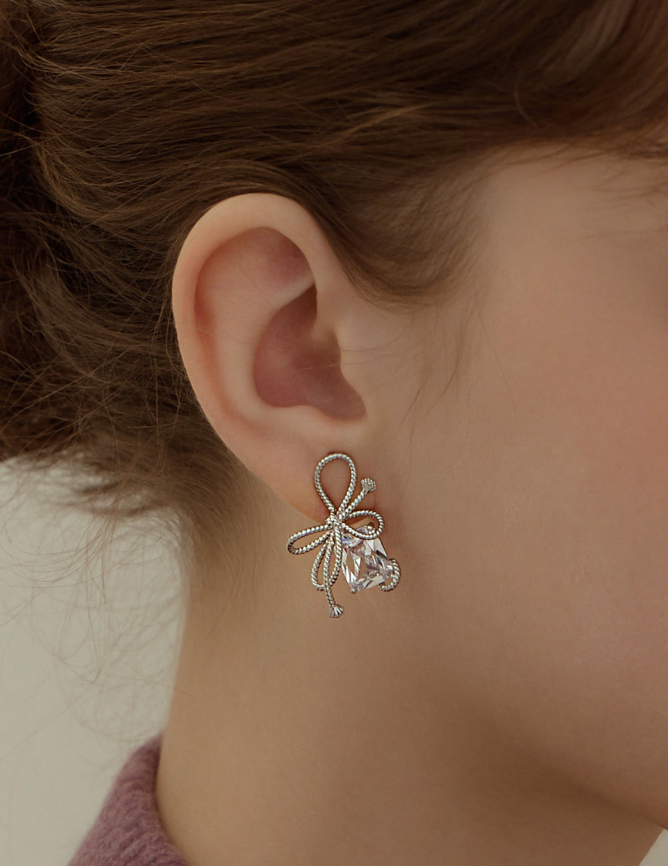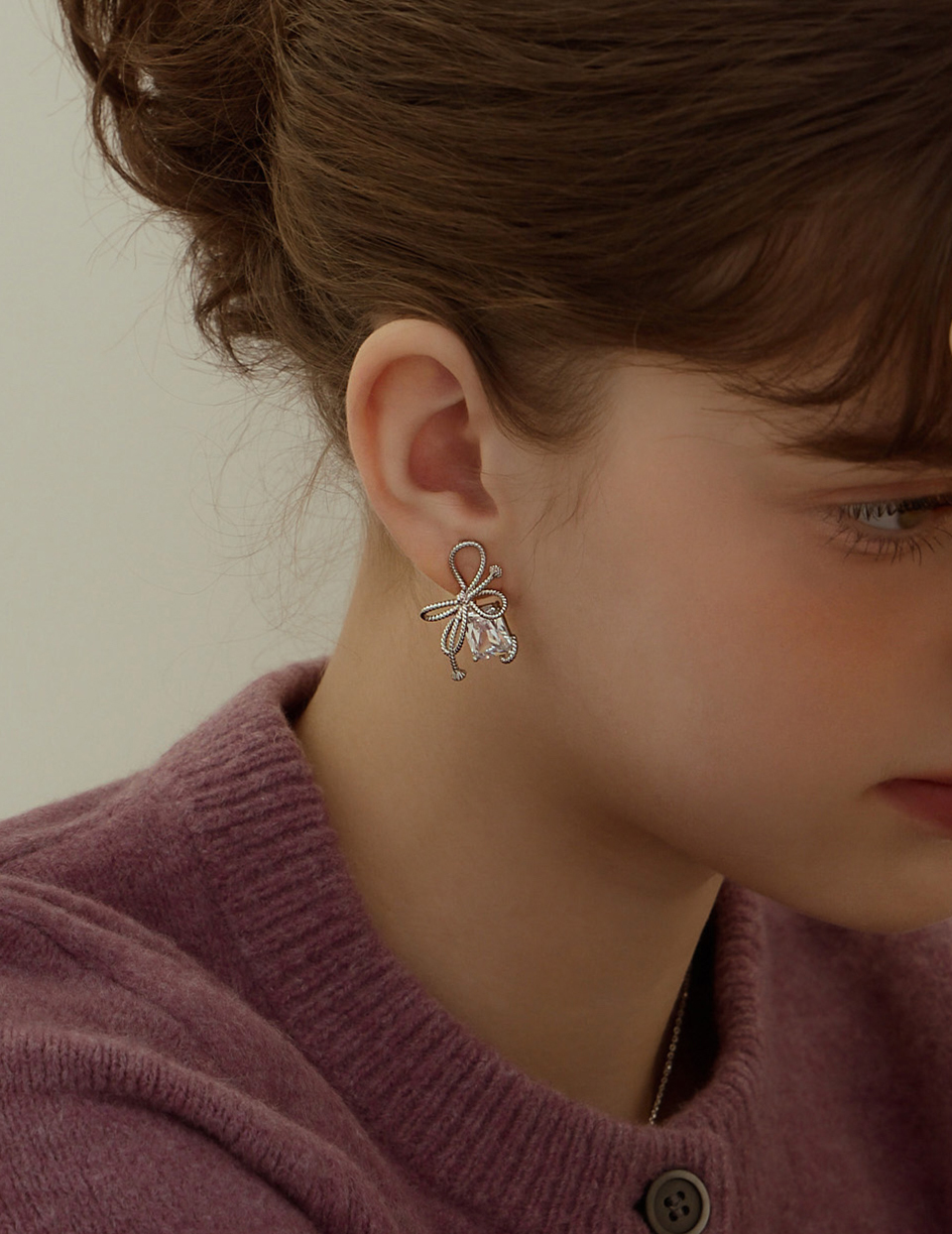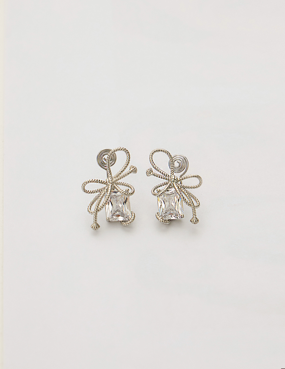 商品名稱:不規則閃耀繩結。夾式耳環(銀)