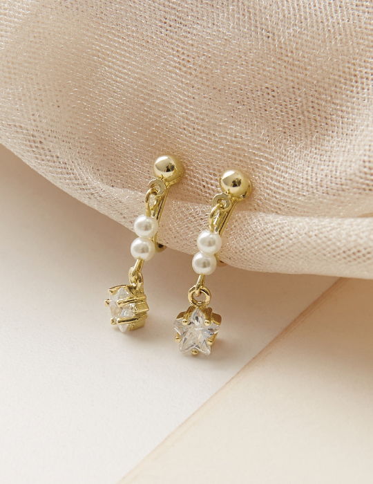 商品材質:14k金電鍍銅/鋯石/人造珍珠