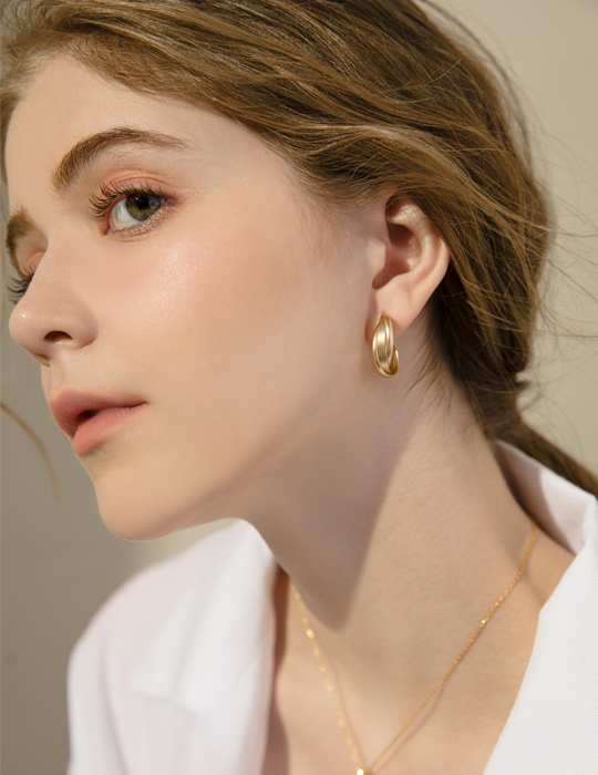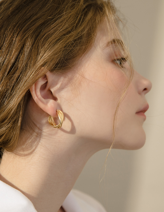 交織線條C型。銀針耳環
