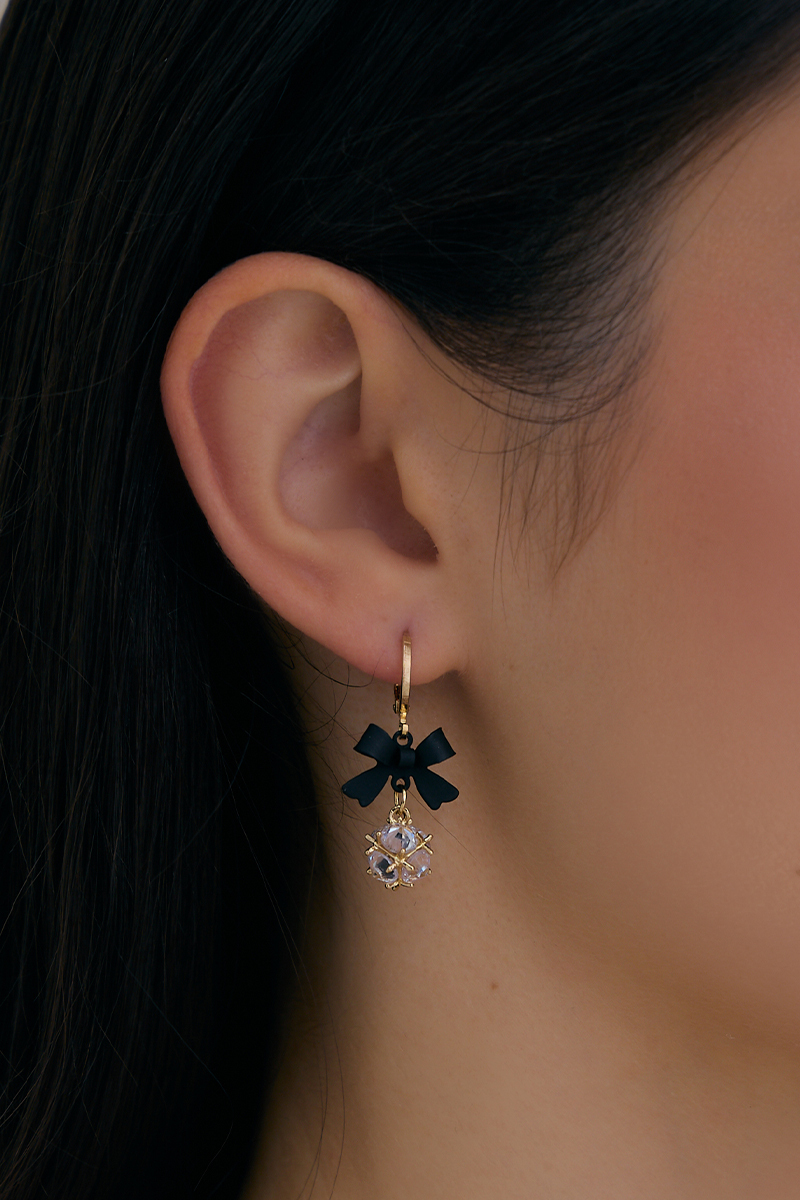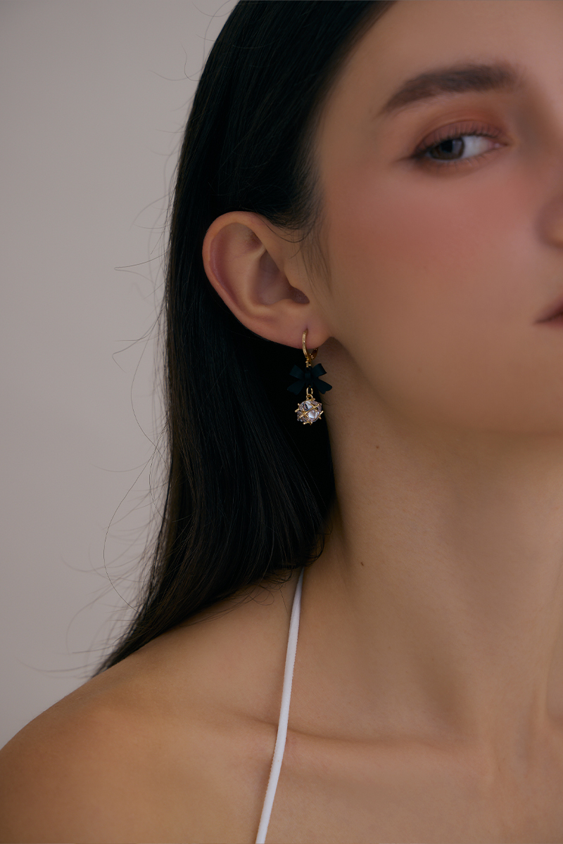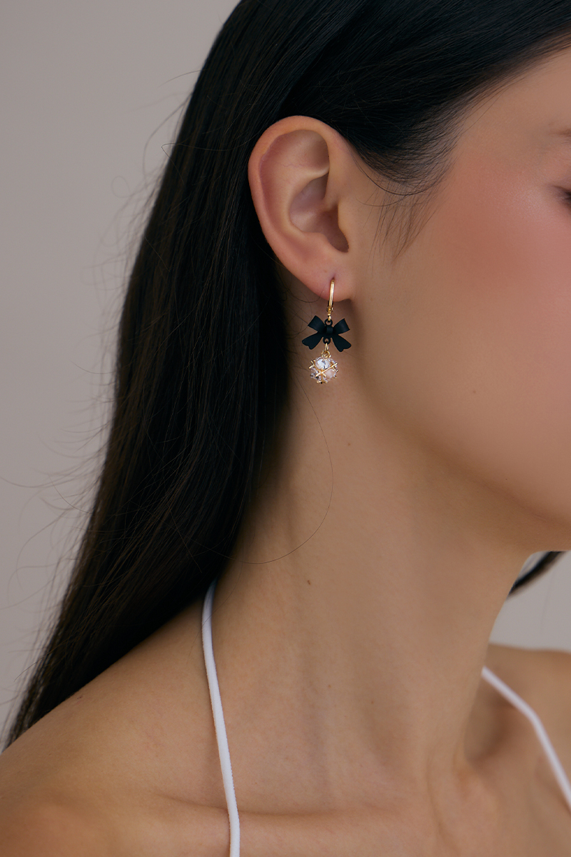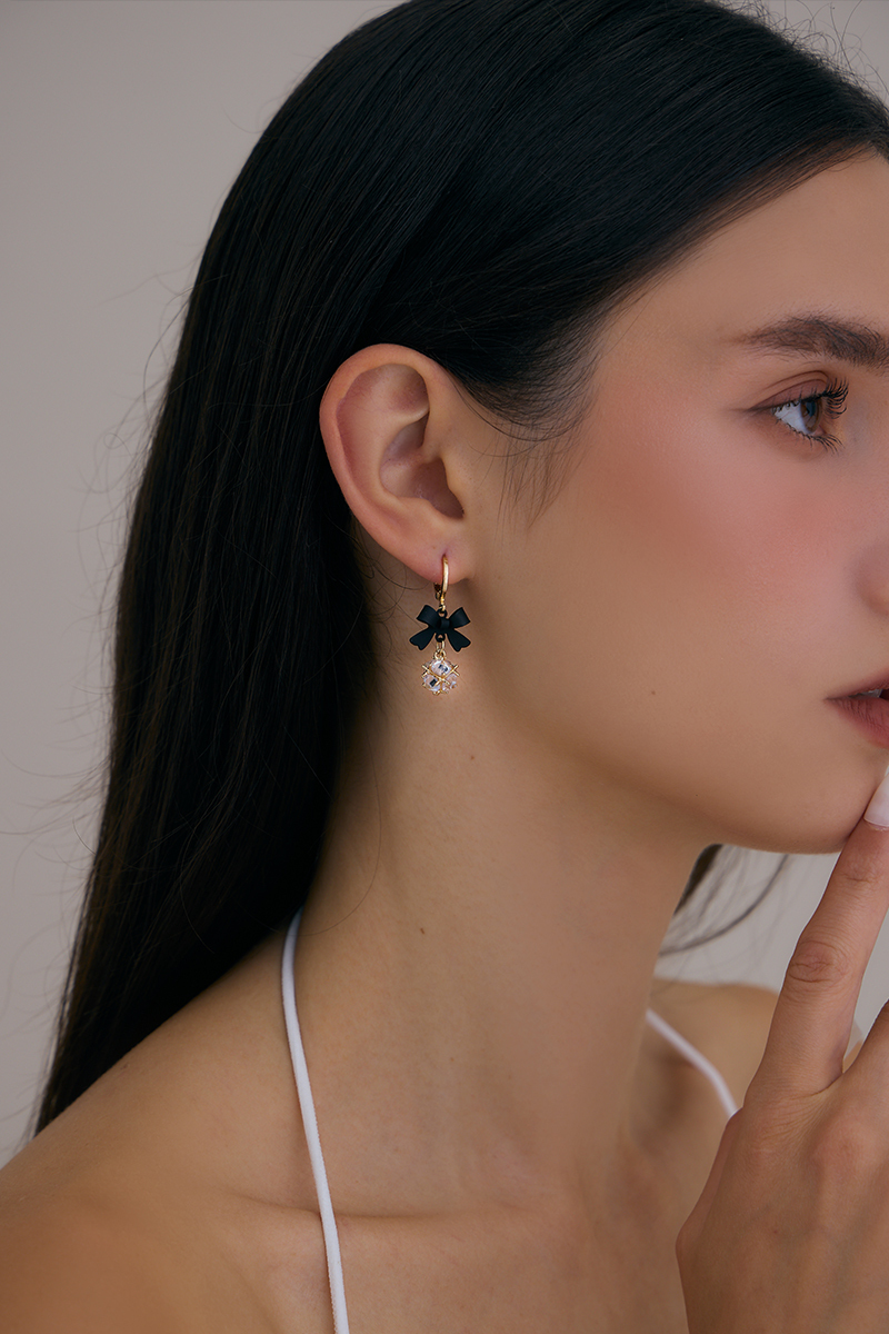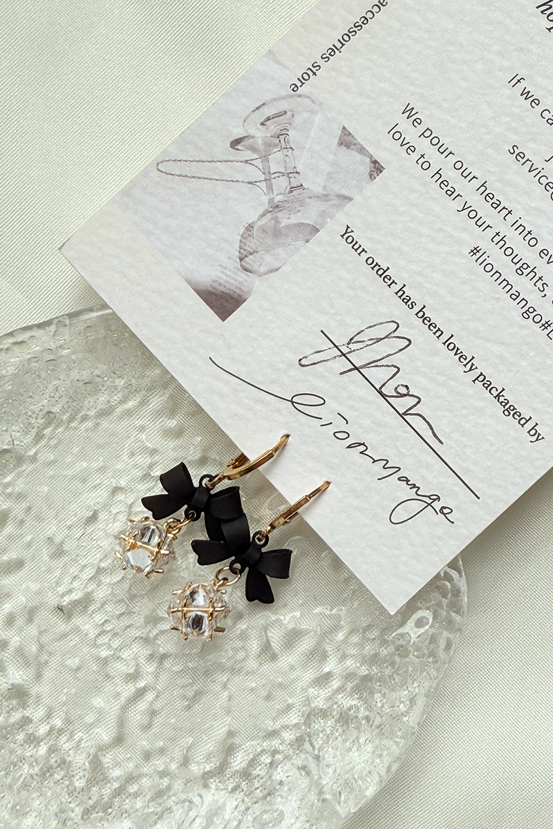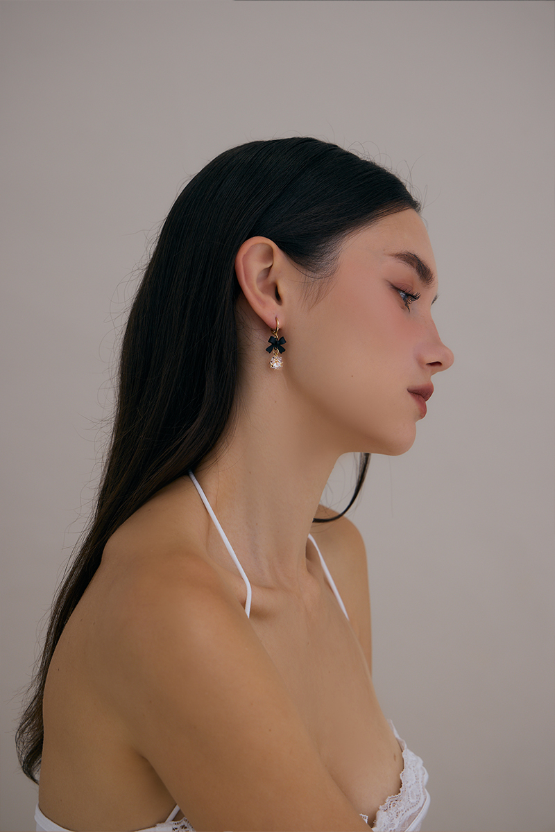 商品名稱: 低奢黑色蝴蝶結。針式耳環(黑)