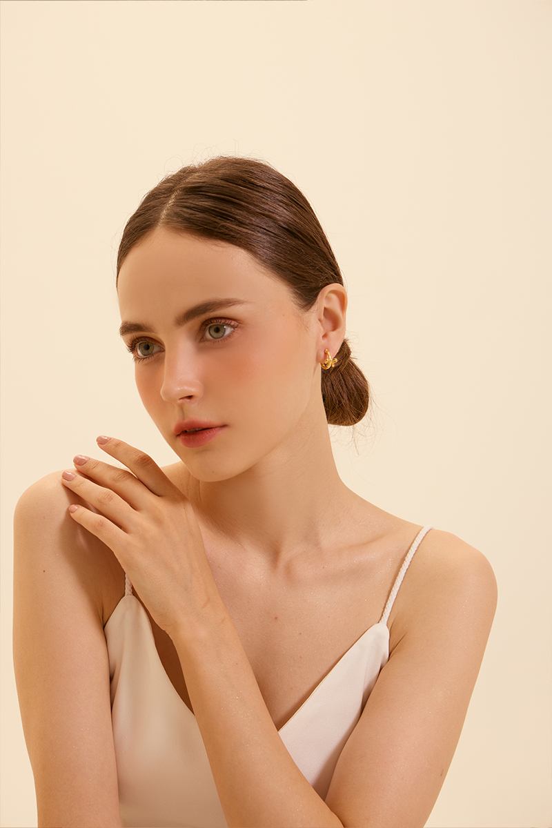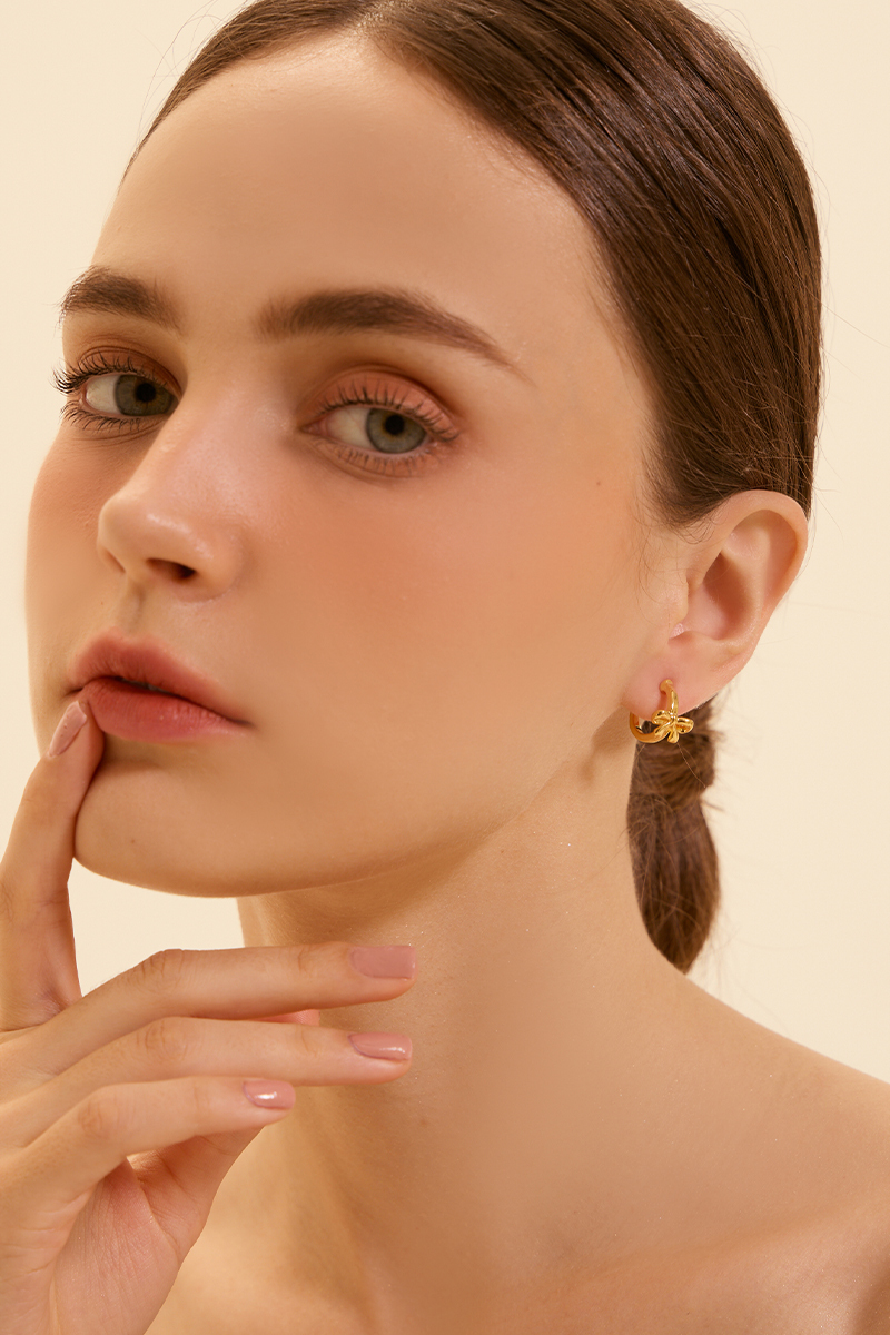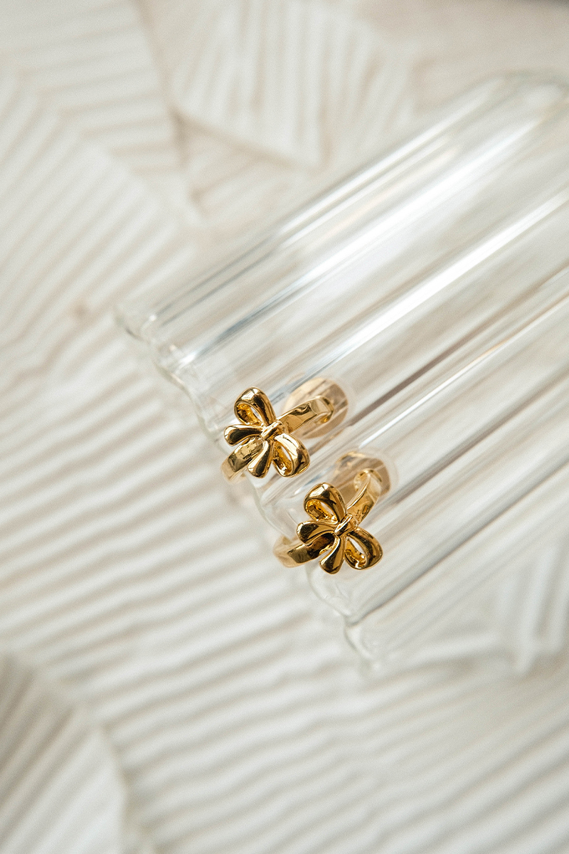 低調蝴蝶結。夾式耳環(金)