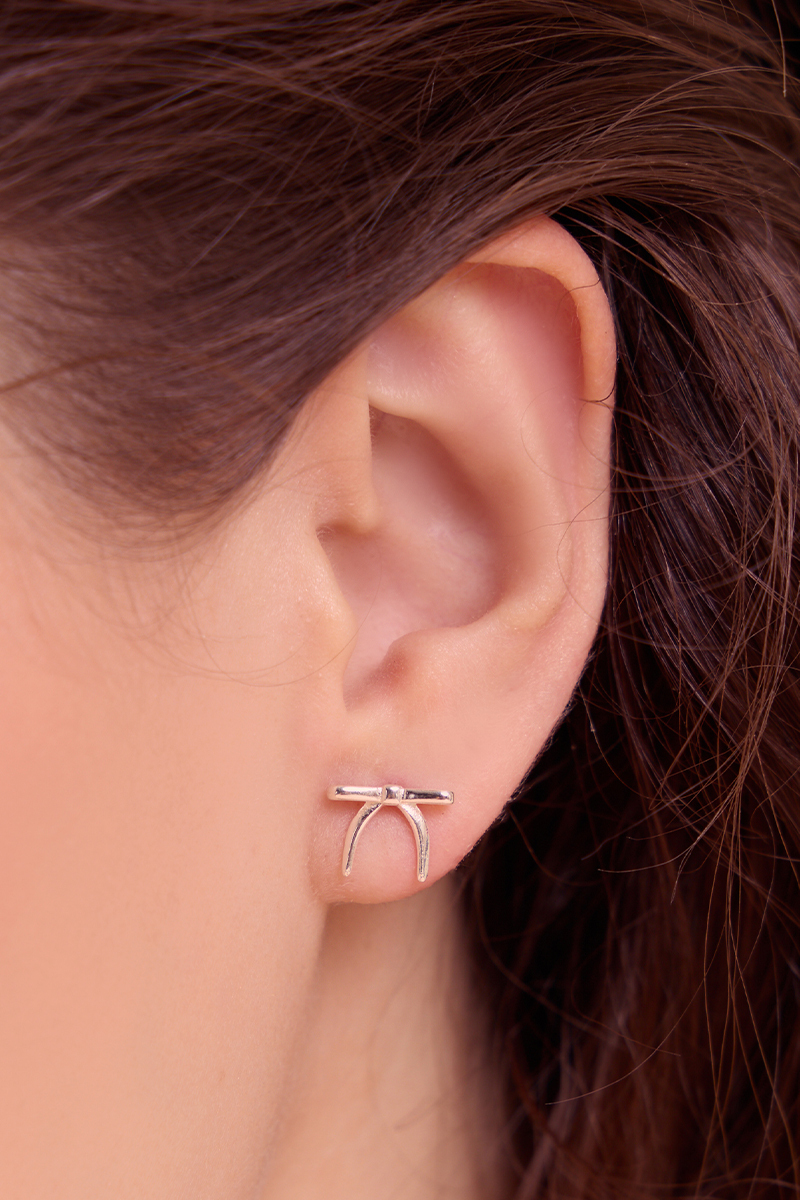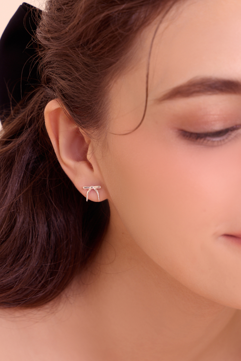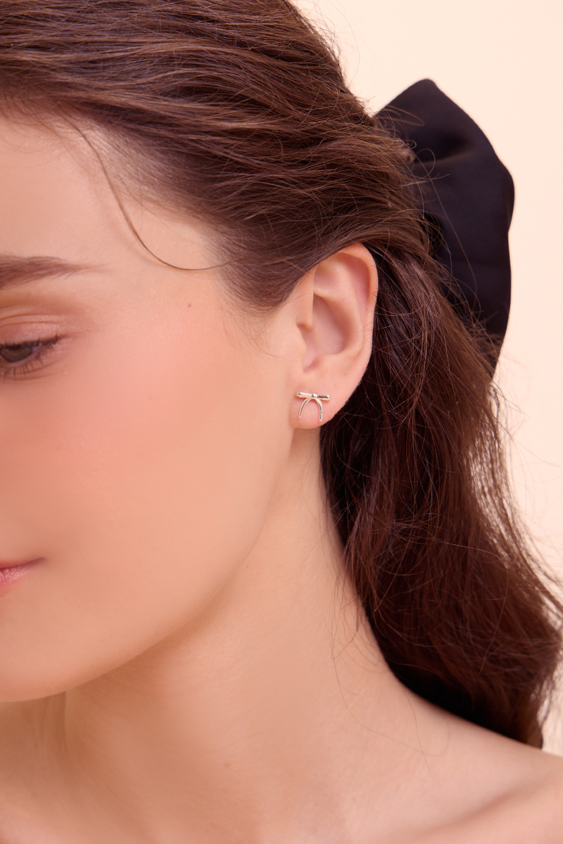 低調蝴蝶結。針式耳環