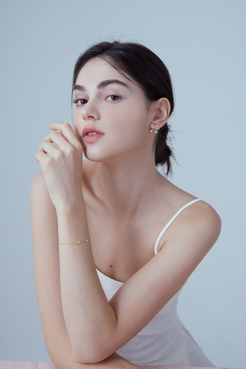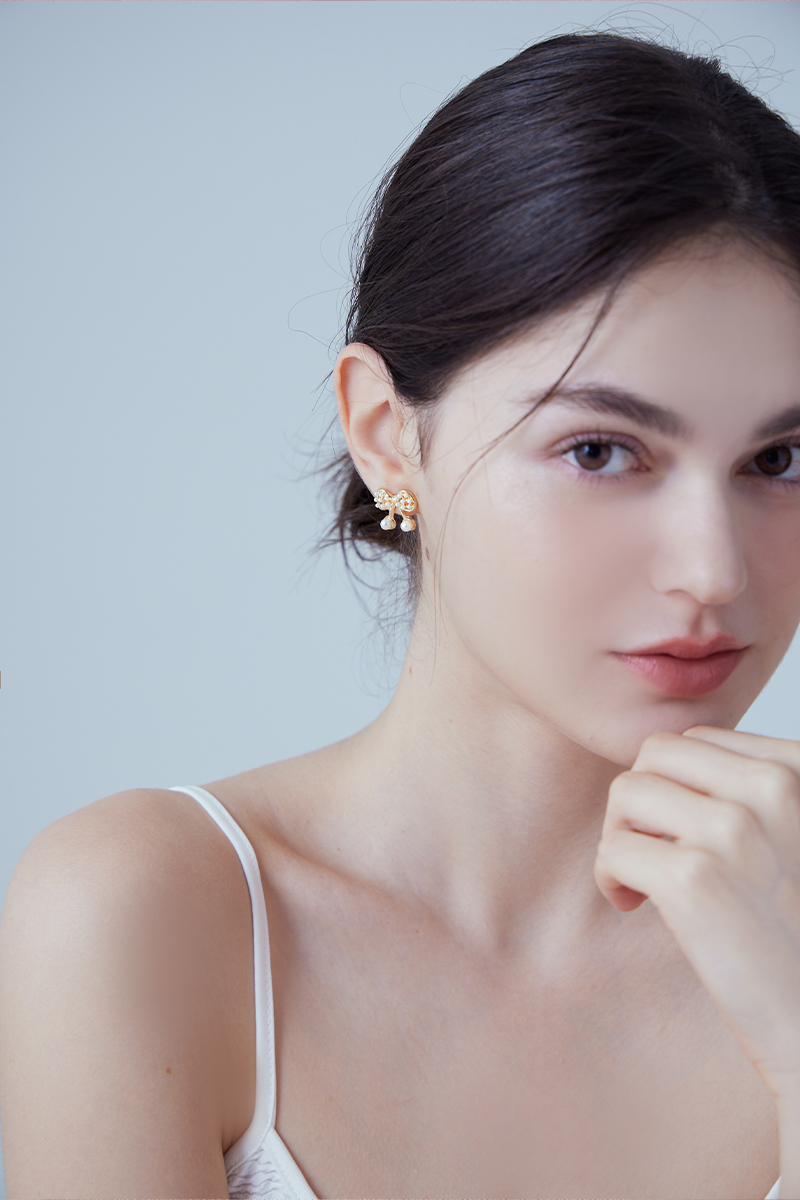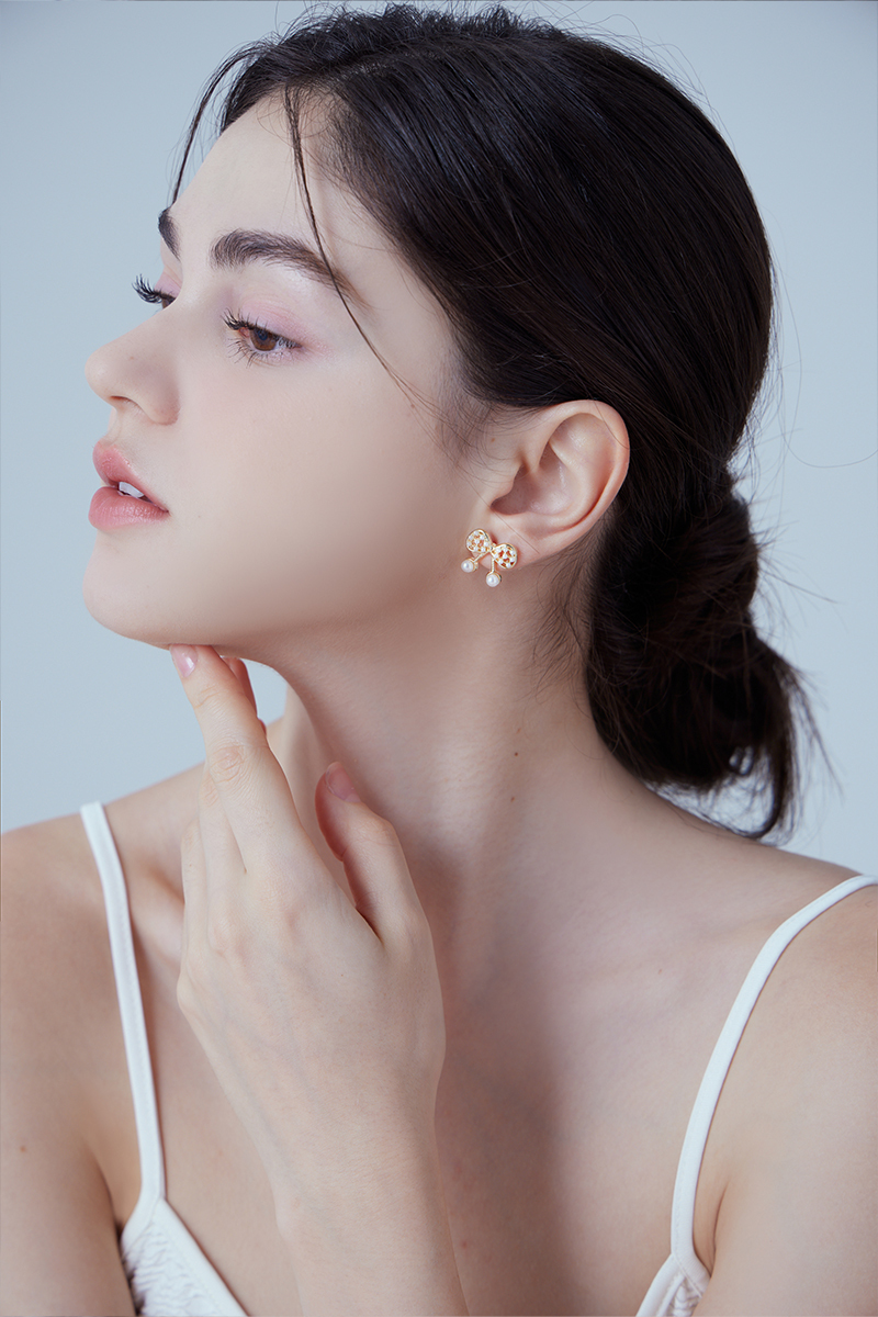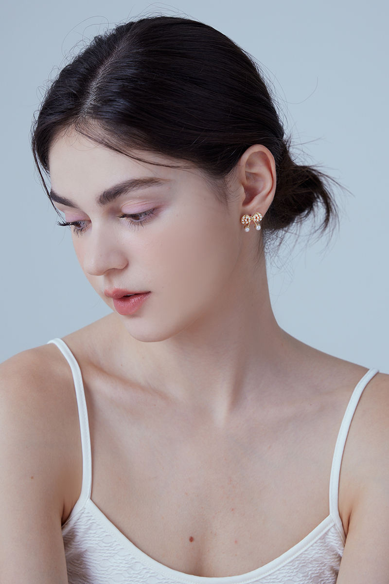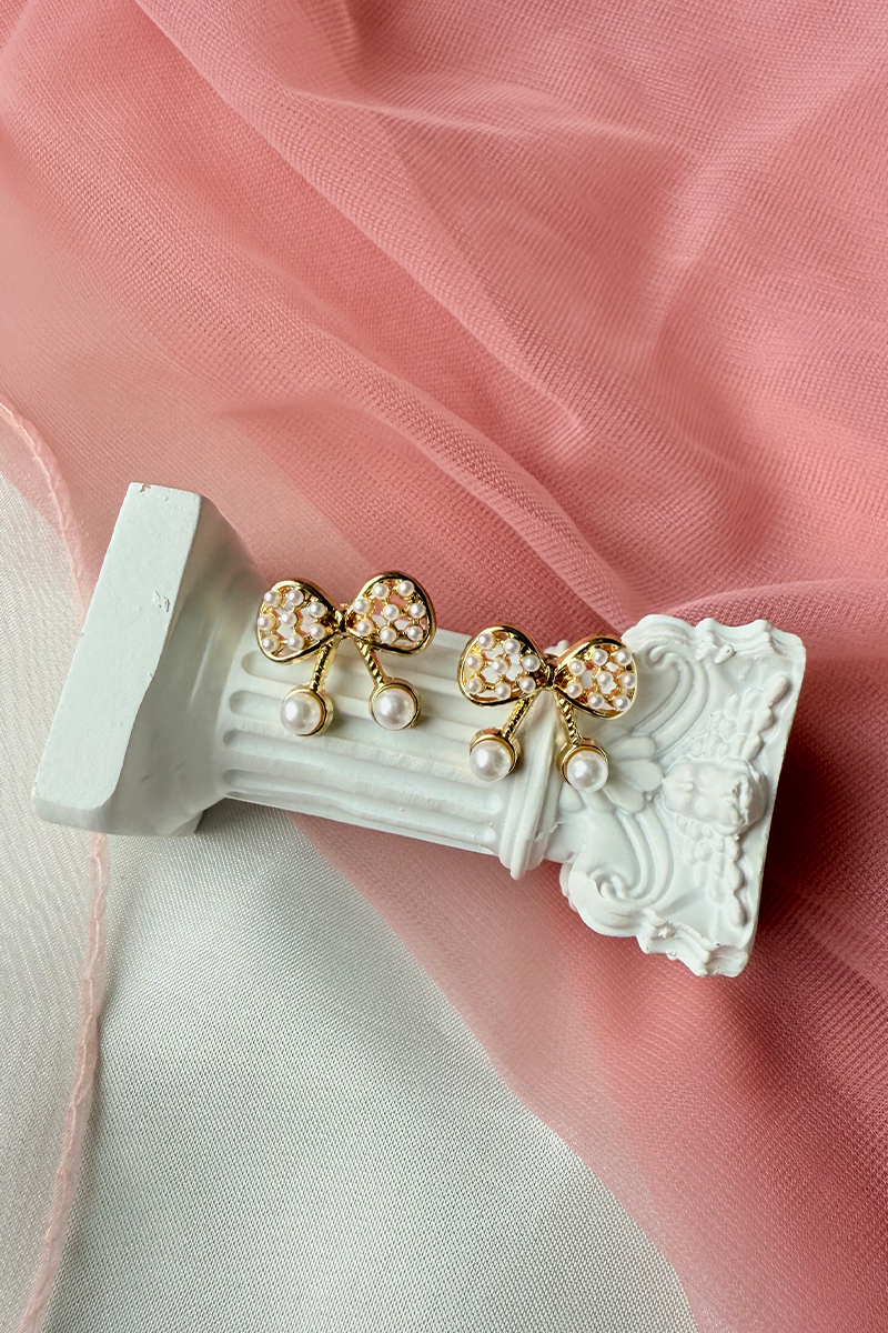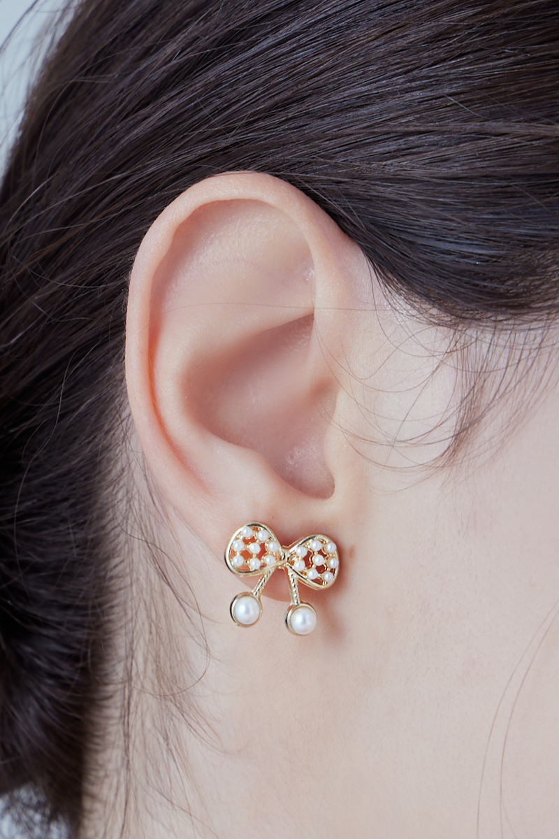 商品名稱: 俏皮蝴蝶結珍珠。銀針耳環