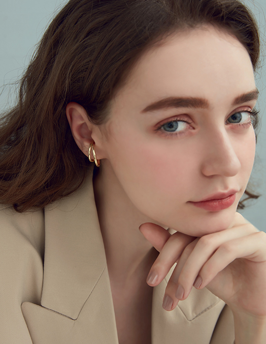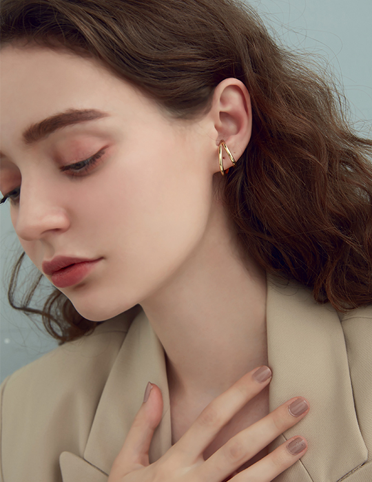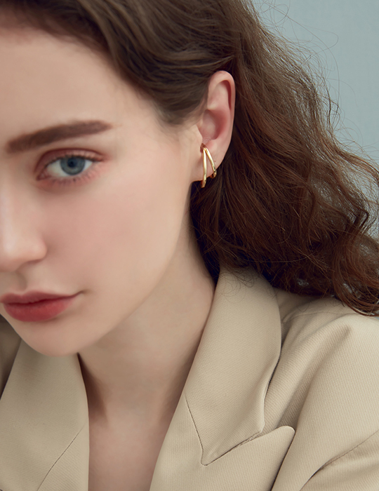 俐落線條感。夾式耳環組