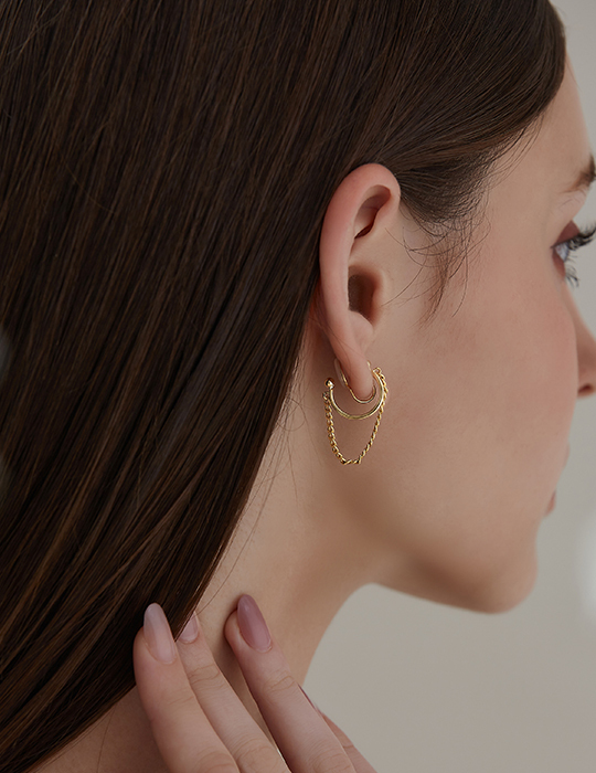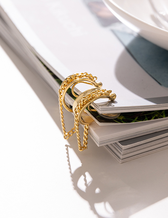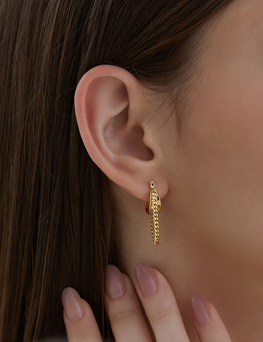個性耳圈流蘇。夾式耳環(金)