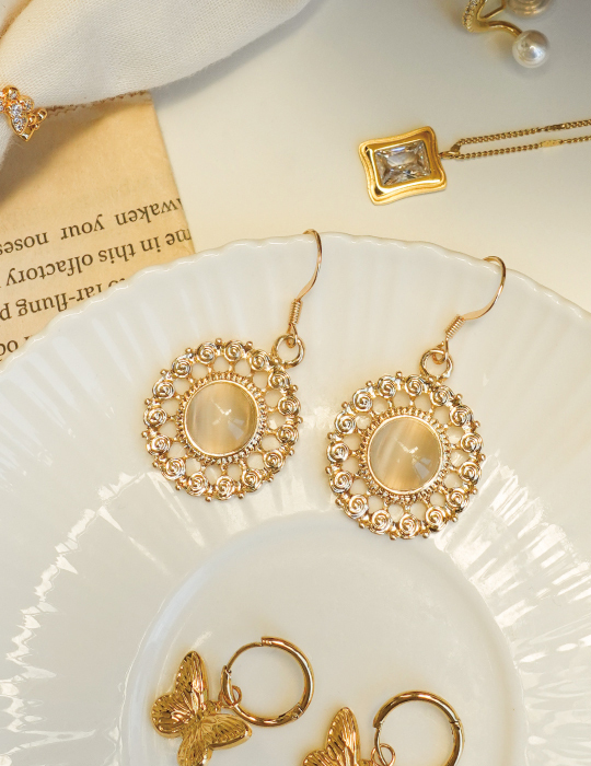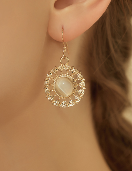商品名稱:優雅懸吊貓眼石。針式耳環
