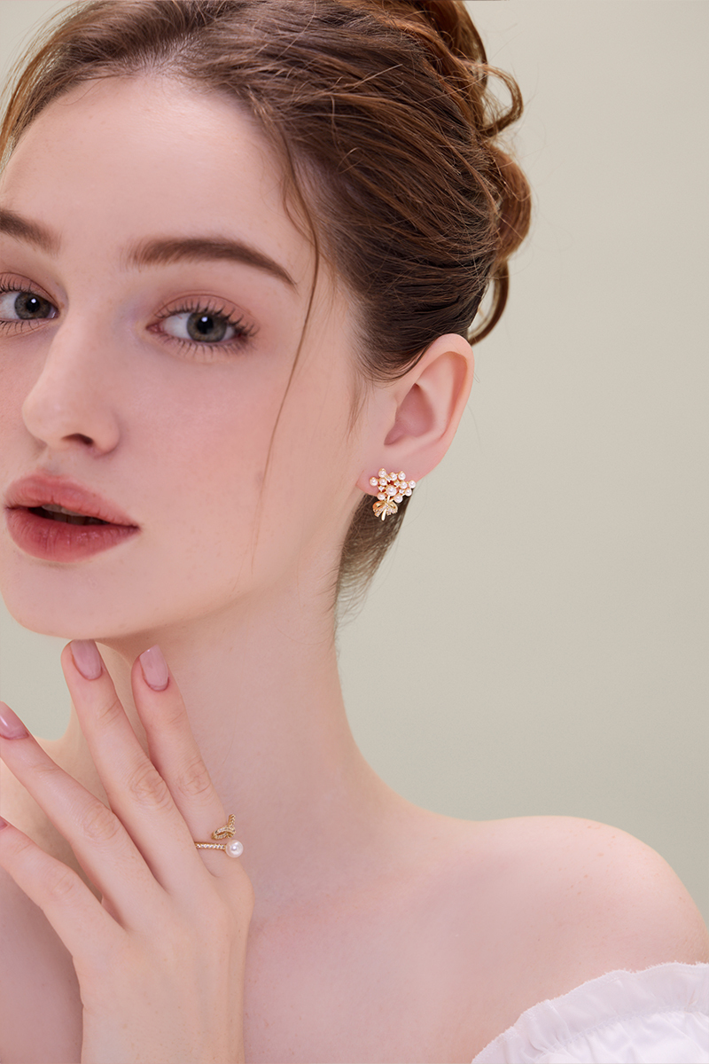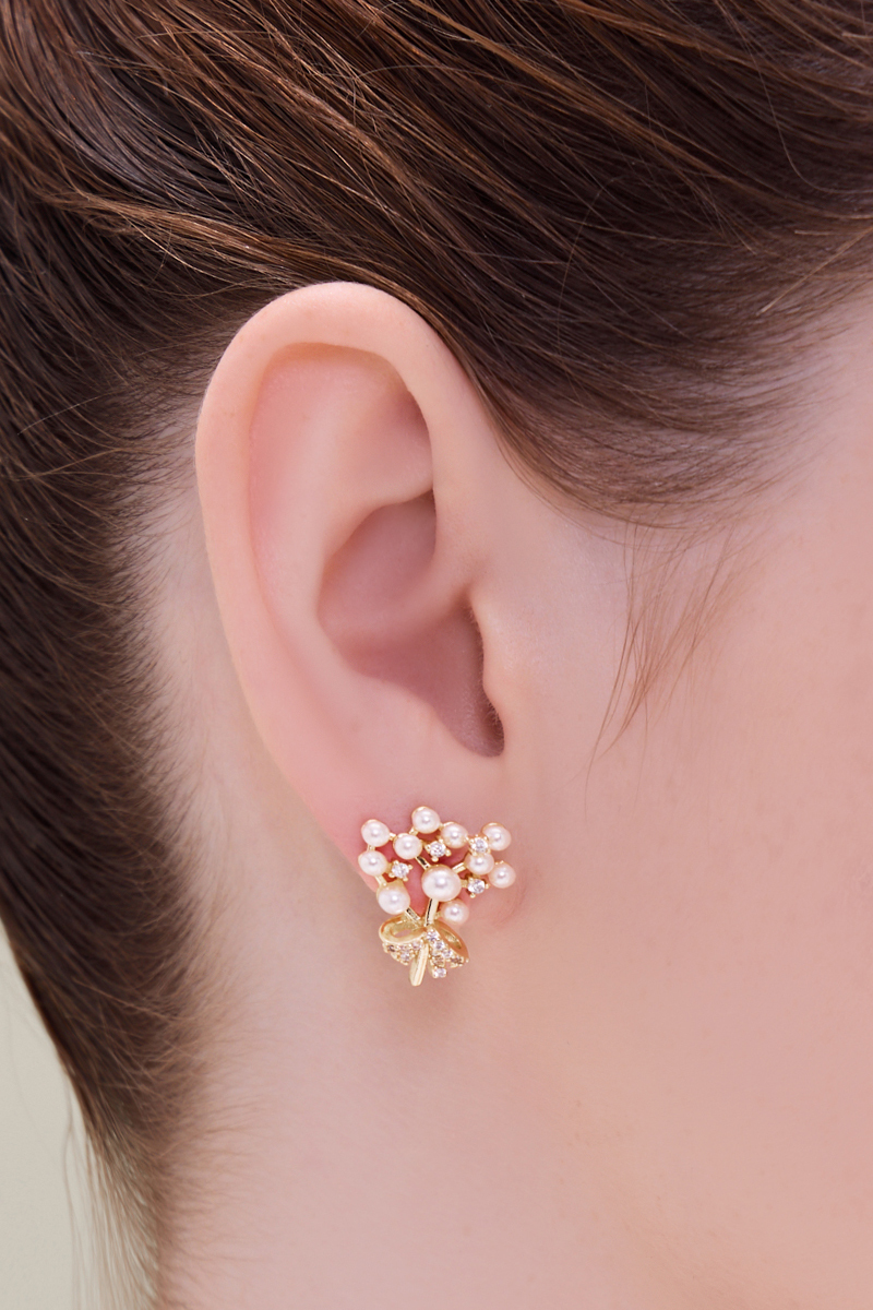 材質:14K金電鍍銅/鋯石/手工珍珠