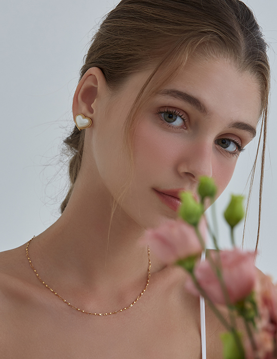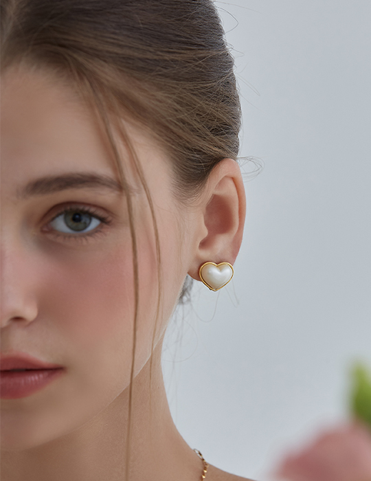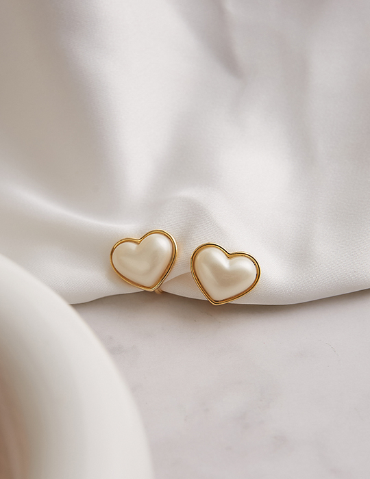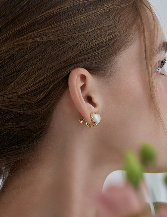 光感珍珠愛心。夾式耳環