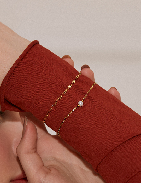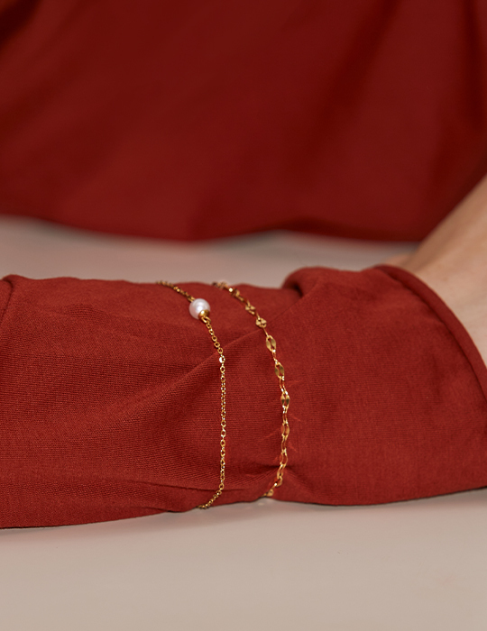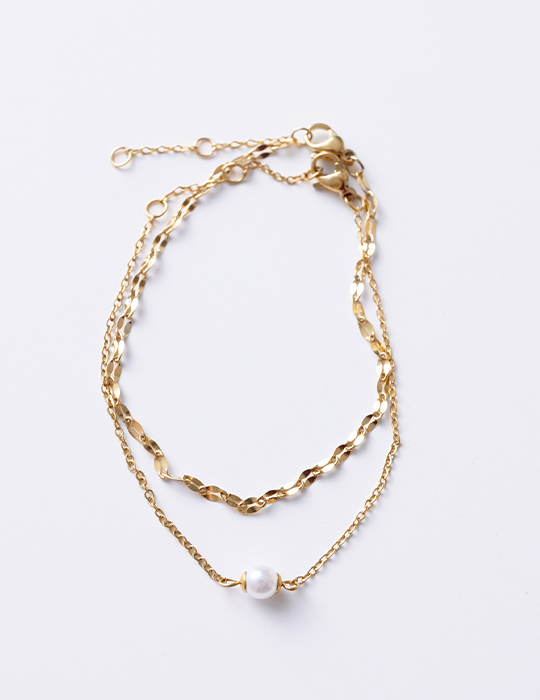 光澤扭轉單珍珠雙層手鍊(金)